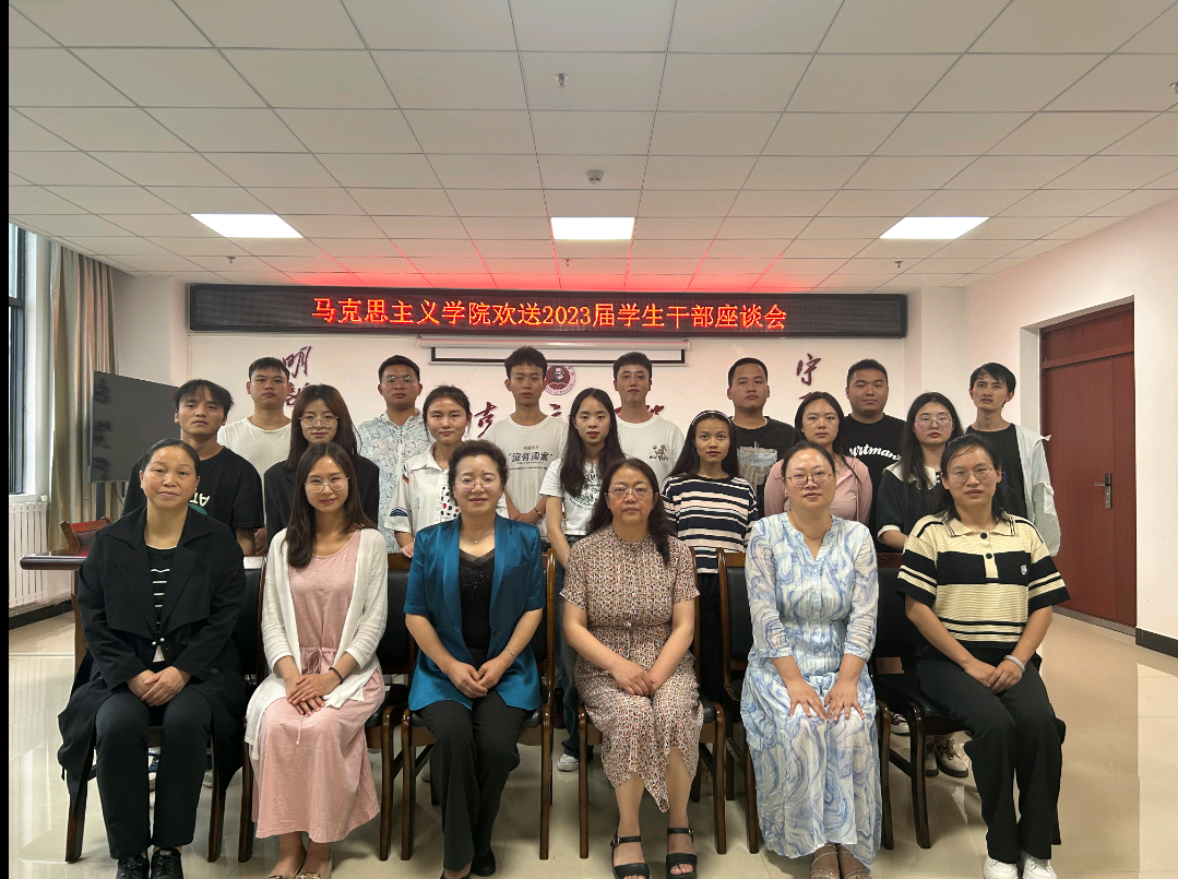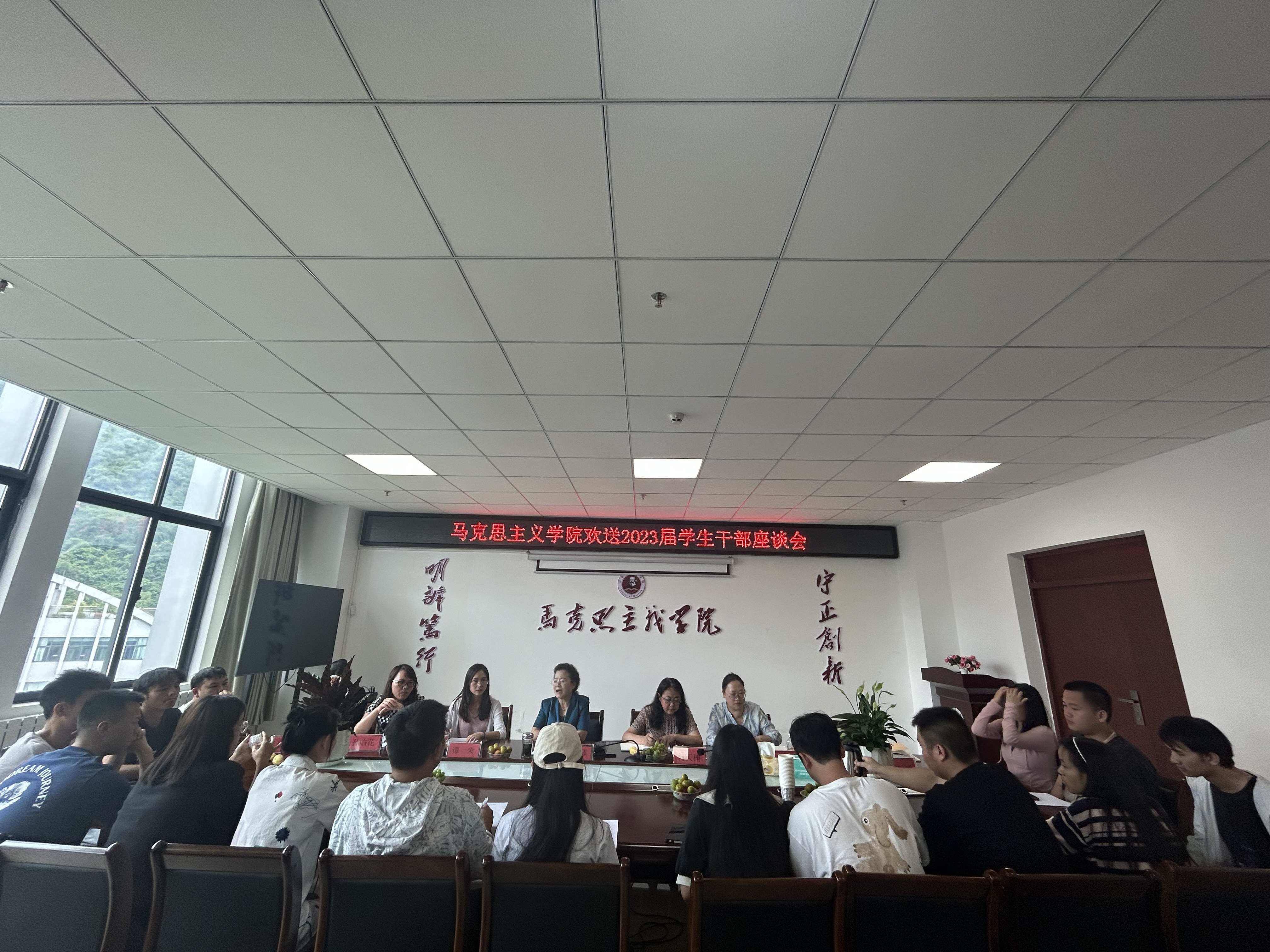 6月18日下午,马克思主义学院在奥学楼1008会议室举办欢送2023届学生干部座谈会。学院党委书记何天栩、学院院长伍友琴、党委副书记蔡娟出席,学院学生党支部书记李江凤、学生科谭荣、喻琼、孙临花、各班班团干部参加。座谈会由蔡娟主持。