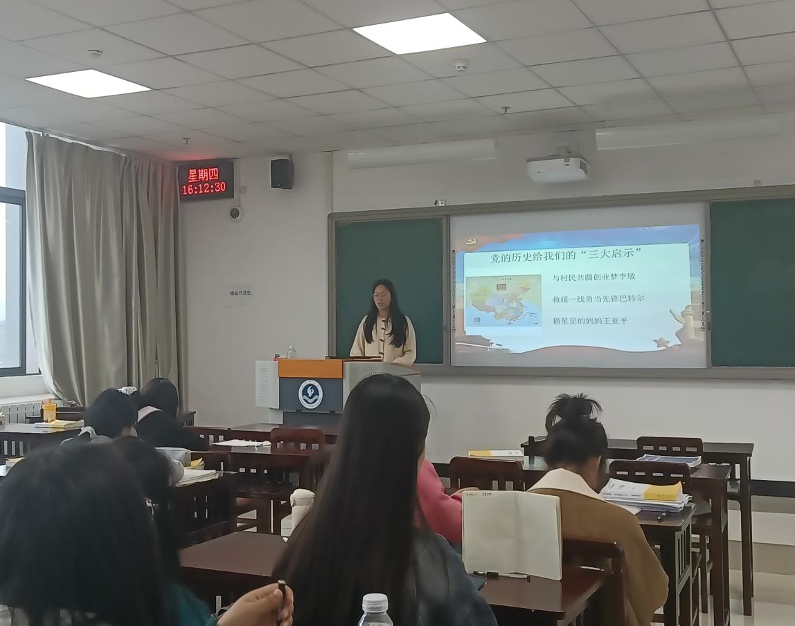 沈晓凤着重讲述“党的历史给我们的三大启示”,并通过“与村民共圆创业梦李敏”、“救援一线勇当先锋巴特尔”、“摘星星的妈妈王亚平”等三个模范人物故事展开讲述。她提议:不论是什么行业,不论我们处在什么位置,都应该向这三位模范人物学习,坚守岗位,敢于奋斗。