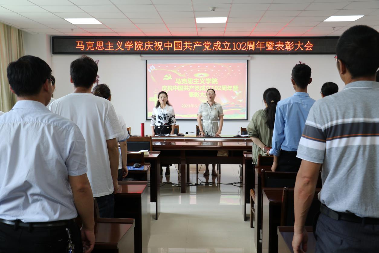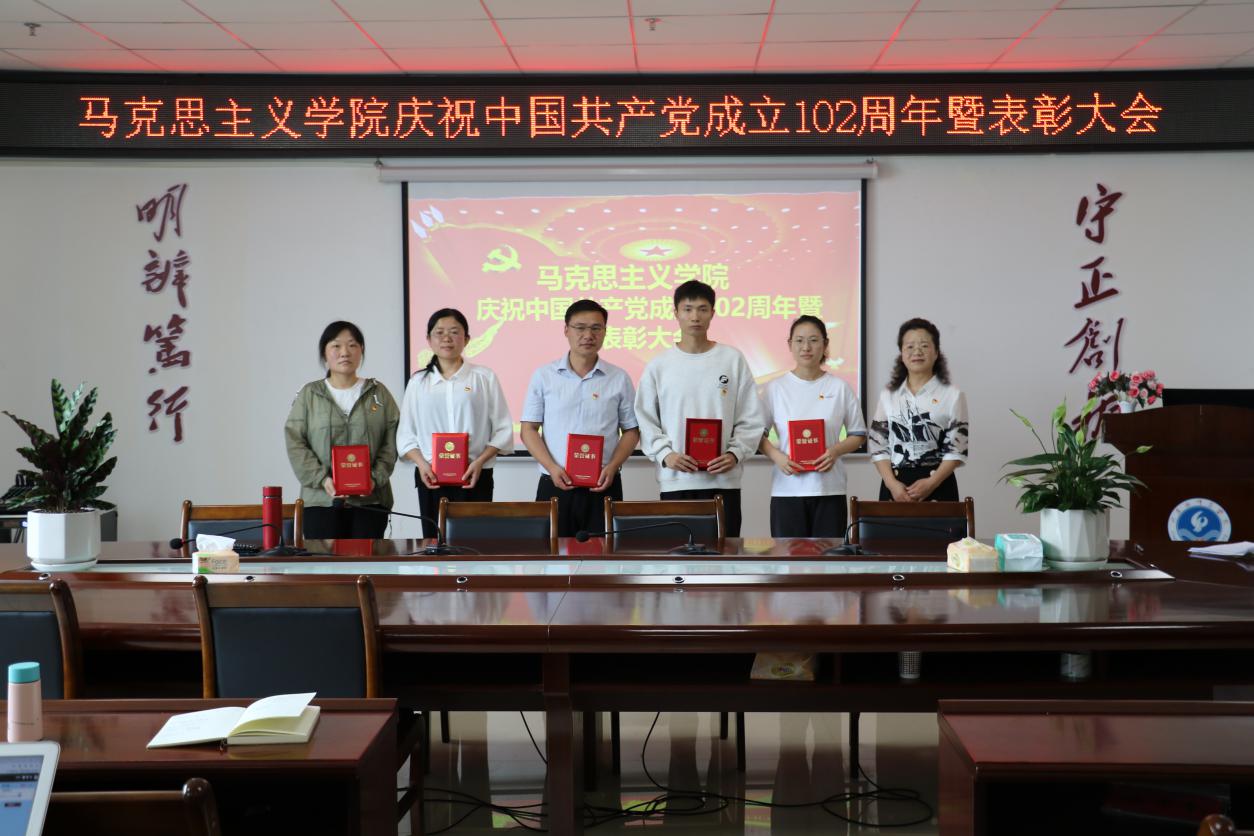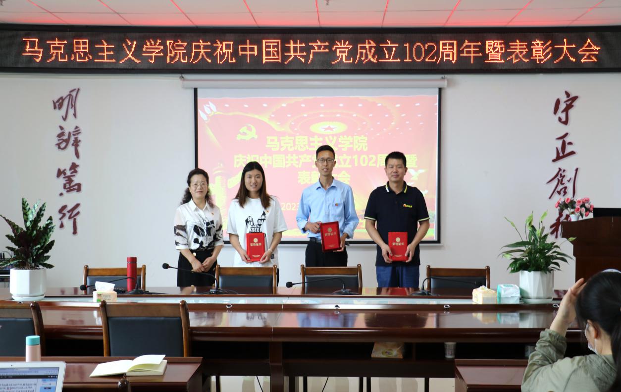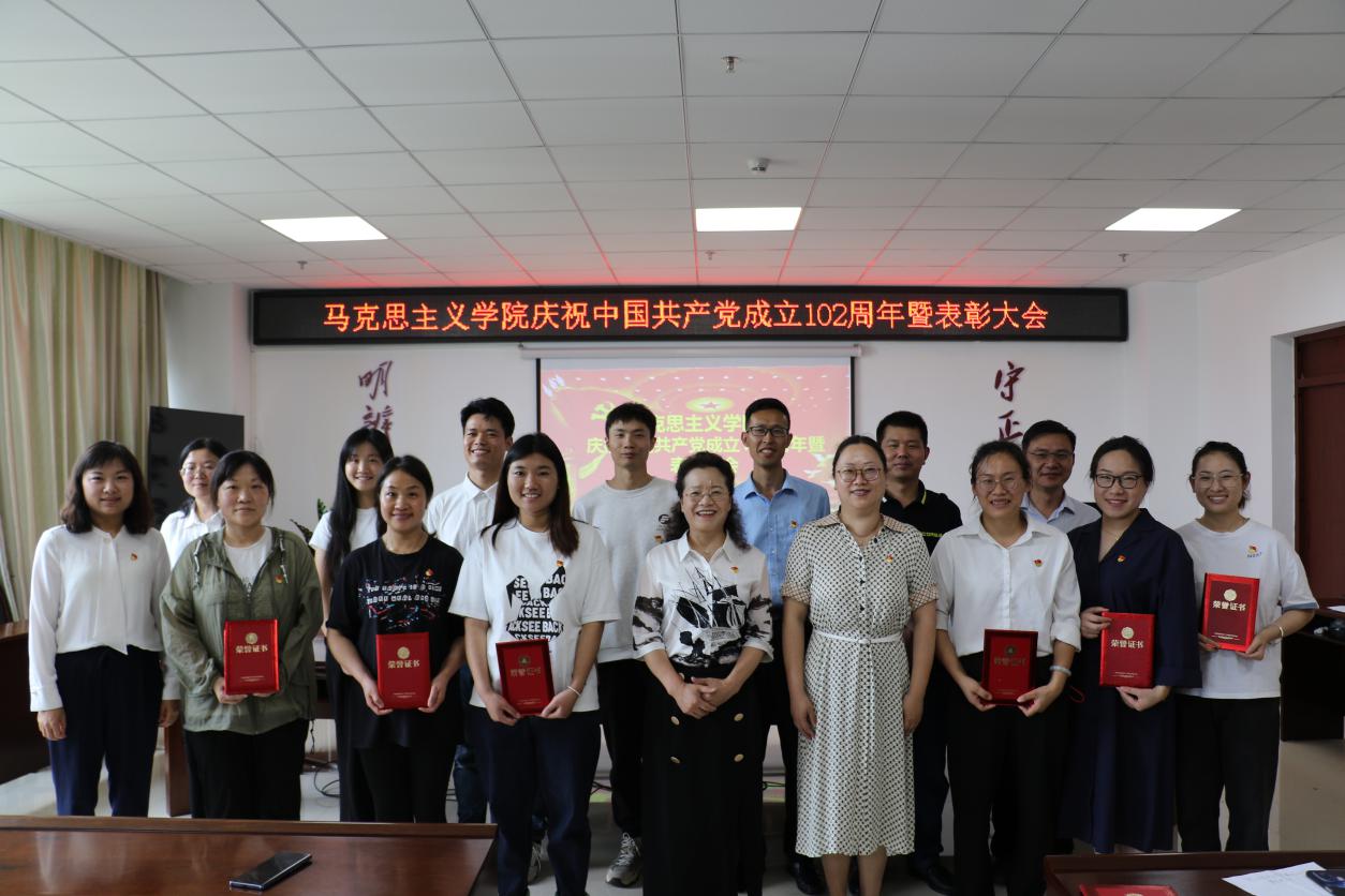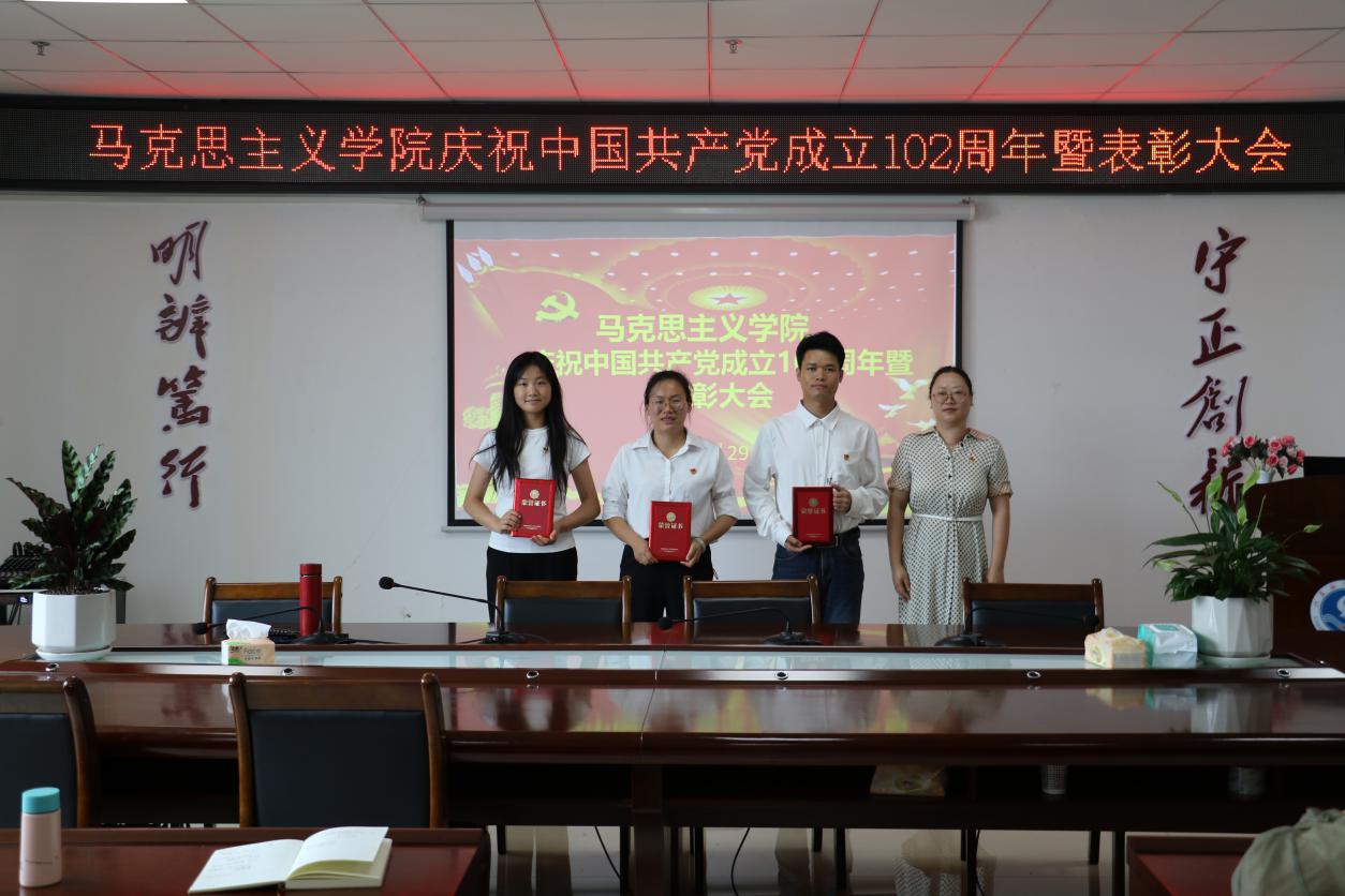 6月29日下午,马克思主义学院在奥学楼10楼1008会议室召开庆祝中国共产党成立102周年暨表彰大会,院长伍友琴教授、院党委副书记蔡娟出席,院教工党支部书记周楚婷、学生党支部书记李江凤及全体党员参加。会议由伍友琴主持。
