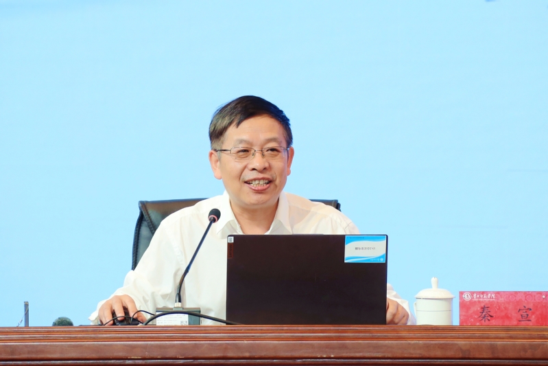 中国人民大学二级教授、博士生导师,中国人民大学习近平新时代中国特色社会主义思想研究院院长,教育部大中小学思政课一体化建设专家指导组组长秦宣作了题为《高质量推进大中小学思政课一体化建设——以北京市为例》的主旨报告。秦宣从促进青少年全面发展、新时代推进思政课改革创新和提高人才培养质量等方面指出了推进大中小学思政课一体化建设的重大意义,提出思政课一体化建设要坚持“全程贯穿”与“学段差异”相结合,遵循学生成长规律,结合大中小学各学段思政课课程标准、课程设置、教学目标、教材体系和教学内容等要素,加强协调合作,注重资源整合,形成育人合力,统筹建立横向贯通、纵向衔接的大中小学思政课程,实现思政教育和学生发展同频共振。