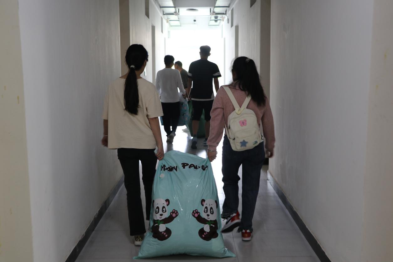 活动当天,全体成员早早在朝阳校区4号公寓门口集合,根据楼栋和寝室的分布,全体成员按照男女比例分成两组,有条不紊地对行李进行整理,确保安全和高效的搬运。