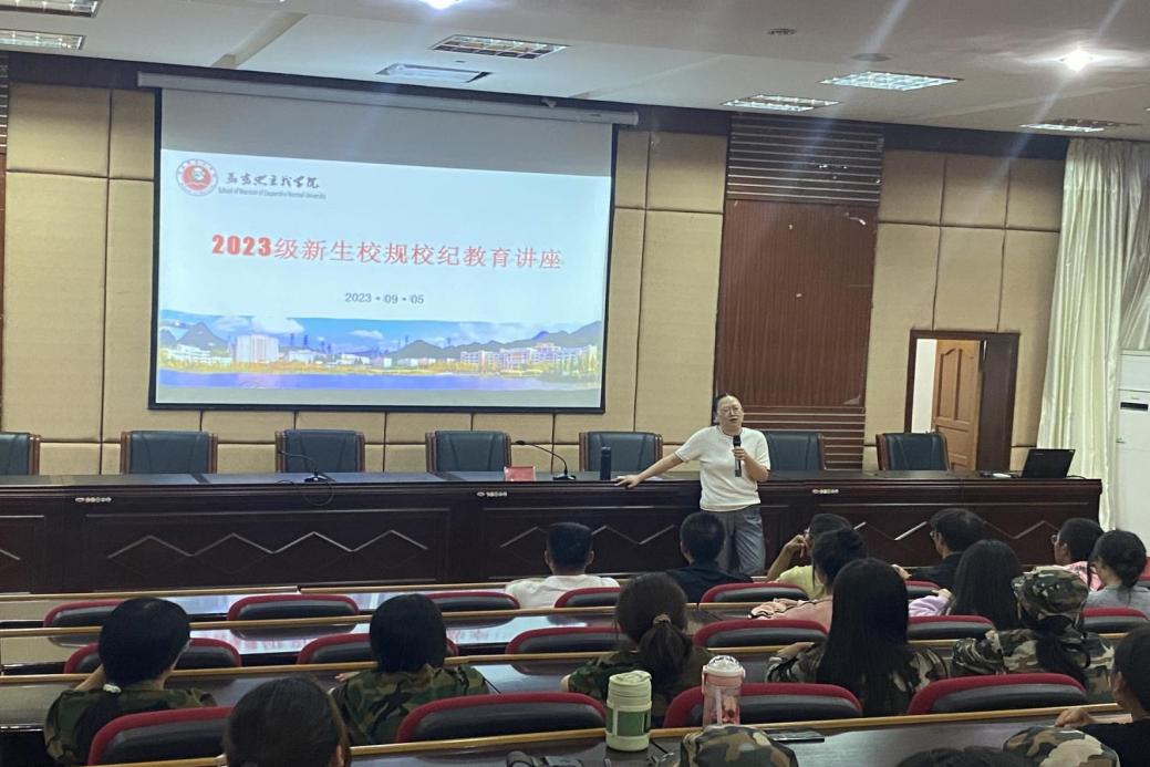 为了加强思想政治教育2023级、2023级专升本新生对校规校纪的认识,9月5日晚,我院在bat365在线中国登录入口智学楼三楼朝阳讲堂举办“校规校纪”主题教育讲座。马克思主义学院党委副书记蔡娟担任主讲人。