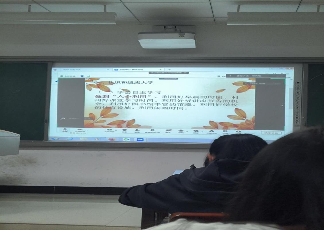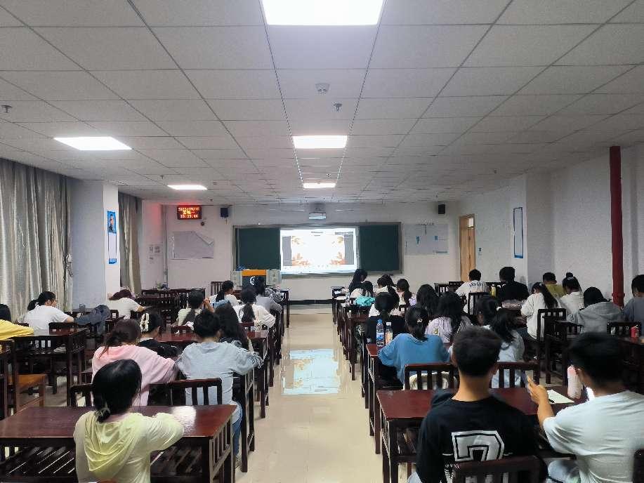 何天栩着重从“认识和适应大学生活”,“增强安全防范意识”等方面给学生进行讲解。这次授课使学生们对学院有了一个初步的了解,同时激发同学们的学习主动性,明确未来目标,将学历提升和既定目标作为重要任务早思考、早计划、早行动。希望同学们健康、乐观、积极对待生活,增强安全意识,尽快融入到丰富多彩的大学生活中。