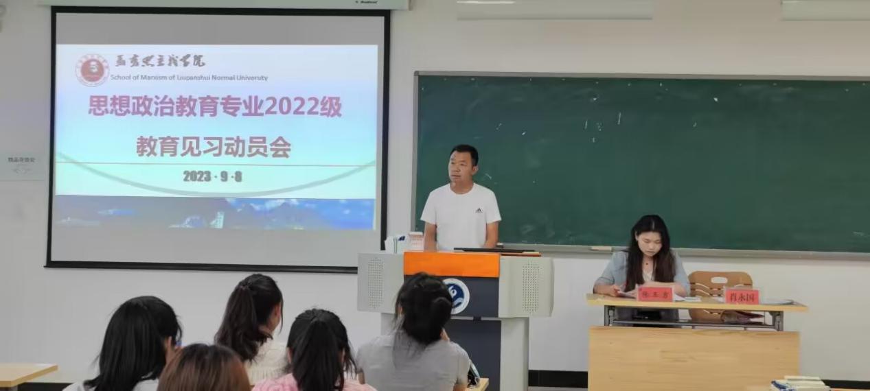 9月8日下午,思想政治教育系在勤学楼301教室召开2022级思想政治教育专业教育见习动员会。思政系副主任张玉秀、师范生技能训练办公室主任肖永国、2022级思想政治教育专业全体同学以及2021级两名交流生参加了本次会议。会议由张玉秀主持。