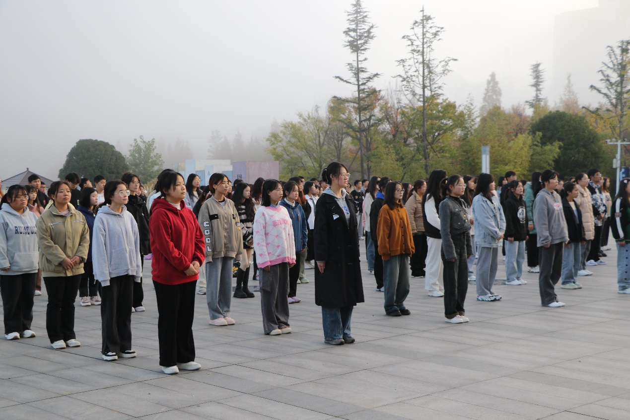 10月30日清晨,马克思主义学院在博学楼前知行广场举行升旗仪式,马克思主义学院思想政治教育专业、历史学专业全体学生到场。由党委副书记蔡娟主持。