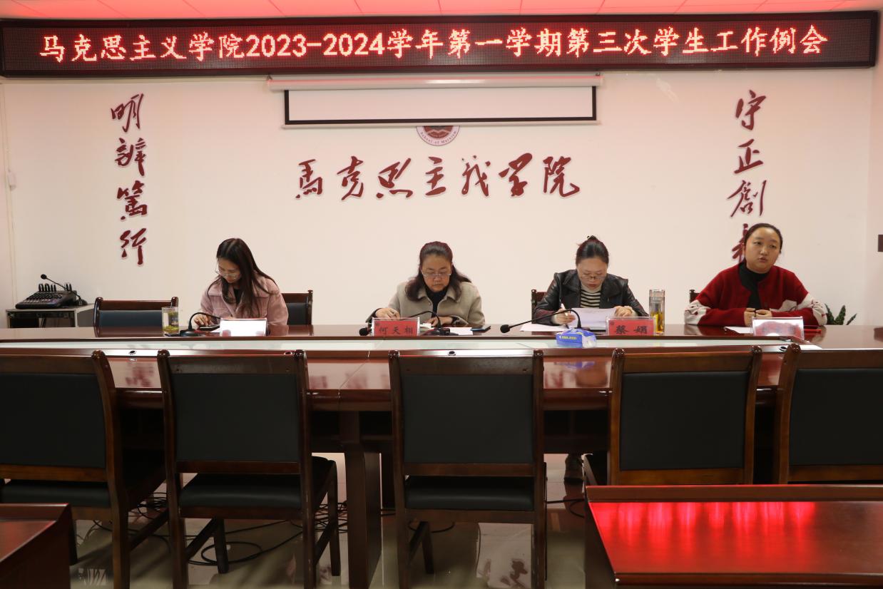 为做好期末学生管理工作,12月11日下午,我院在奥学楼1008会议室召开本学期第三次学生工作例会。学院党委书记何天栩、副书记蔡娟出席,学生科(团委)韩玄哲、全院班团学生干部参加会议。会议由学生科(团委)谭荣主持。