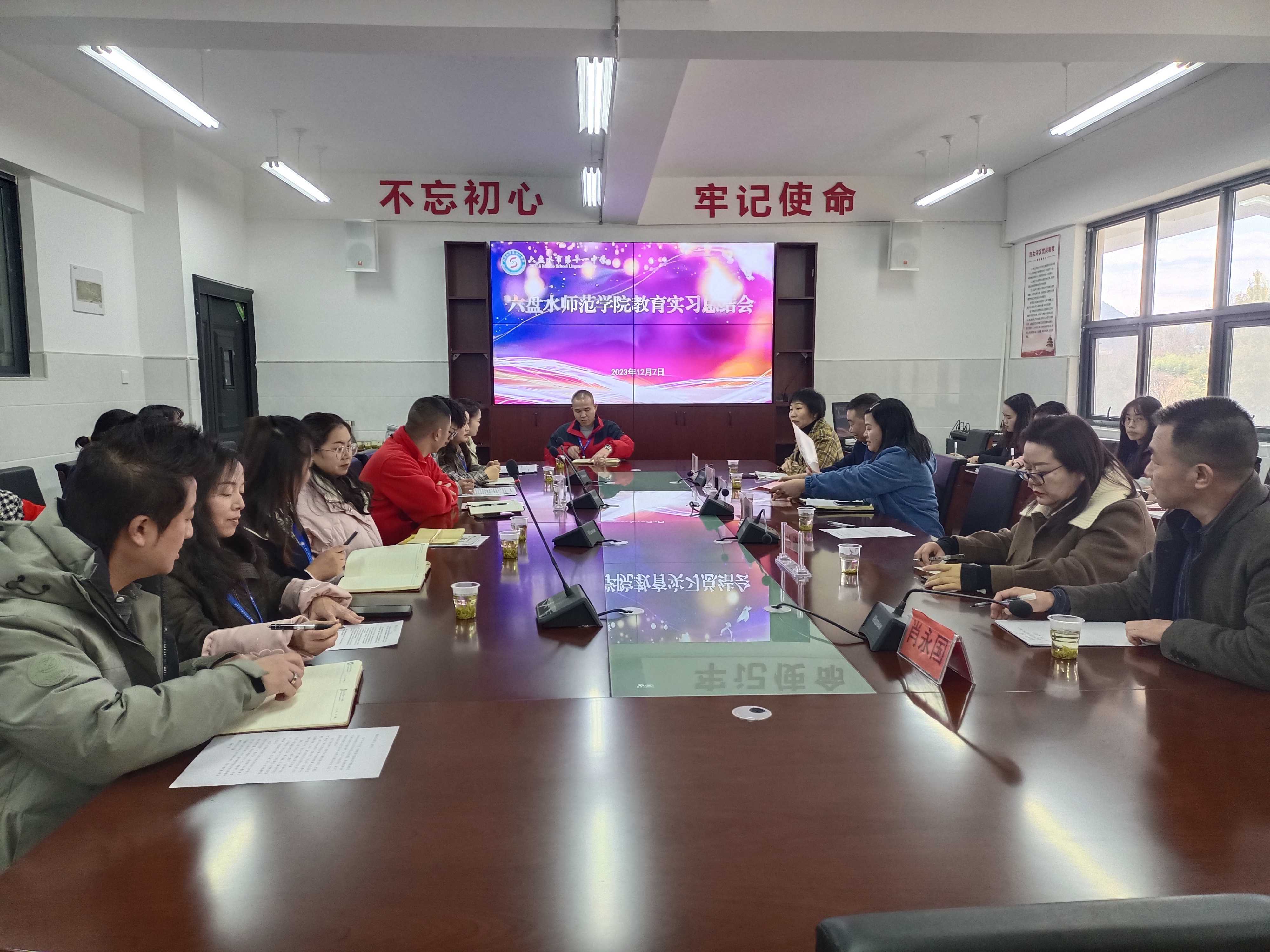 12月7日下午,马克思主义学院思想政治教育2020级学生教育实习总结会在六盘水市第十一中学举行。学院院长王世平、实习带队教师肖永国、市十一中副校长李天、实习指导老师以及全体实习生参加了本次会议,会议由六盘水市第十一中学教务主任陈庆福主持。