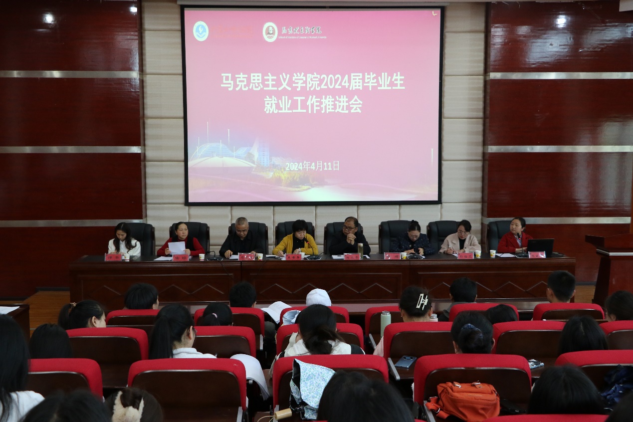 会议伊始,王世平宣读《马克思主义学院2024年毕业生就业工作实施方案》,并部署有关工作。蔡娟作就业形势分析与2024年“西部计划”政策解读,鼓励学生积极报名。接着,喻琼传达学校就业工作会议要求,孙临花通报各班学生目前就业情况。