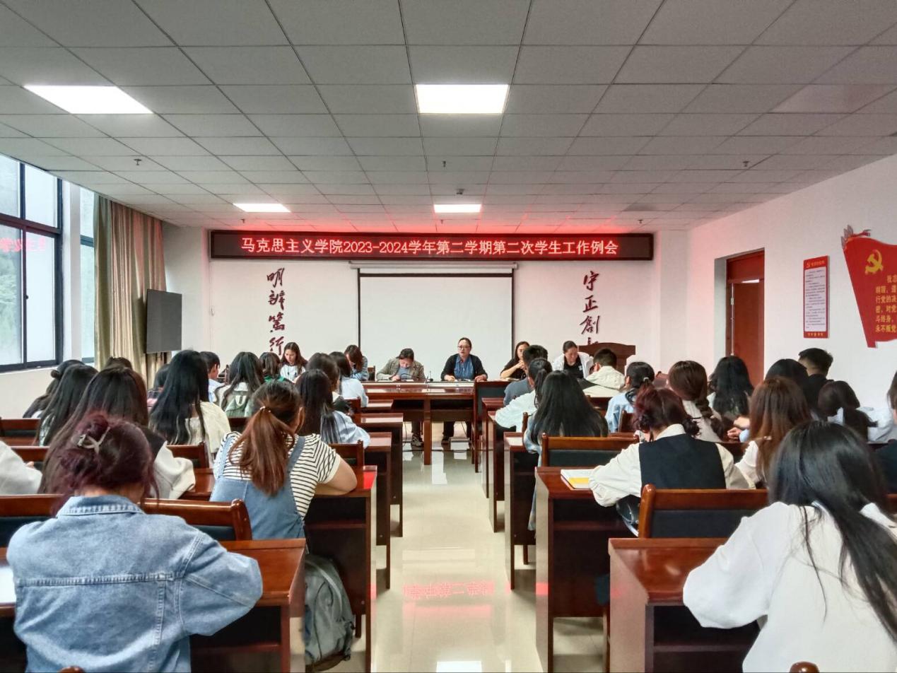 5月13日,我院在奥学楼1008会议室召开了2023-2024学年第二学期第二次学生工作例会。学院党委副书记蔡娟、学生党支部书记李江风、学生科谭荣、辅导员孙临花和喻琼参与会议。会议由学生科(团委)科长(书记)韩玄哲主持。