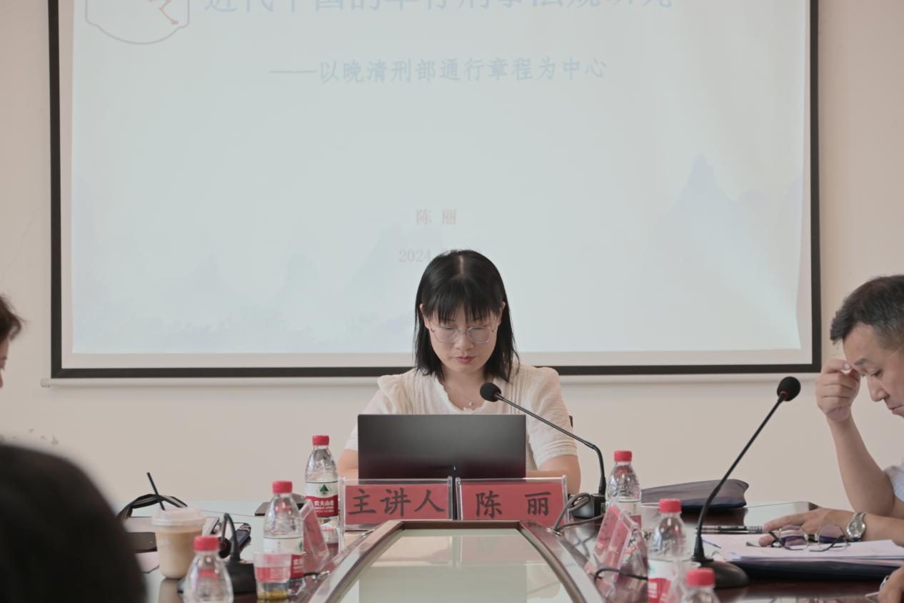 讲座中,陈丽博士开宗明义,指出“通行章程”是未编入或不宜编入的律例,但仍具有其一定的法律效力,具有因时制宜的特点和补充律例的作用。尔后又详细说明晚清刑部通行章程的生成机制、内容构成与主要内容,凝练出晚清刑部通行章程“重实体轻程式”等特点。再由“清朝法律不仅治民,兼以治官”,提出晚清刑部通行章程在国家治理中的积极作用。以古观今,自上总结,对下延伸,以晚清刑部通行章程为中心集中探讨了近代中国的单行刑事法规的总体样态。随后,陈煜教授与罗莉娅教授就“通行章程”的发展演变等方面与陈丽博士进行了深入探讨。