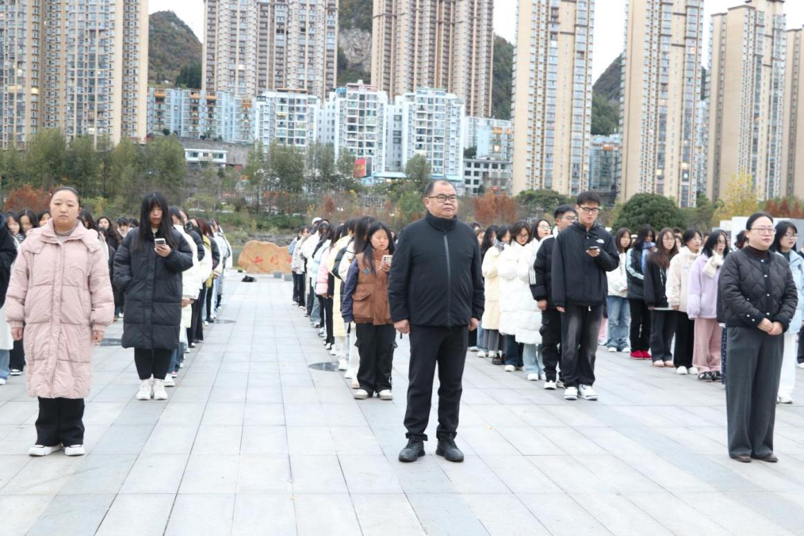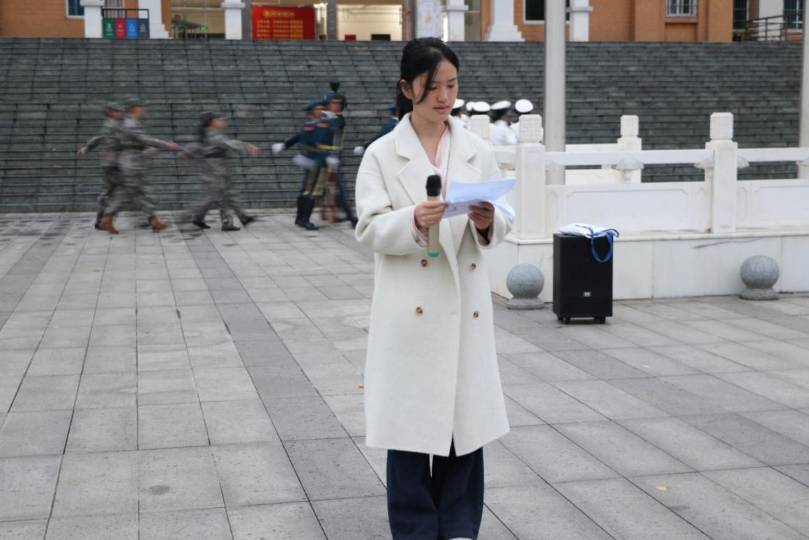 11月25日清晨,我院于博学楼知行广场举行升旗仪式。学院党委书记杨永贵、党委副书记蔡娟、学生科(团委)科长(书记)韩玄哲和马克思主义学院全体学生到场。思想政治教育2023级学生武然主持升旗仪式。