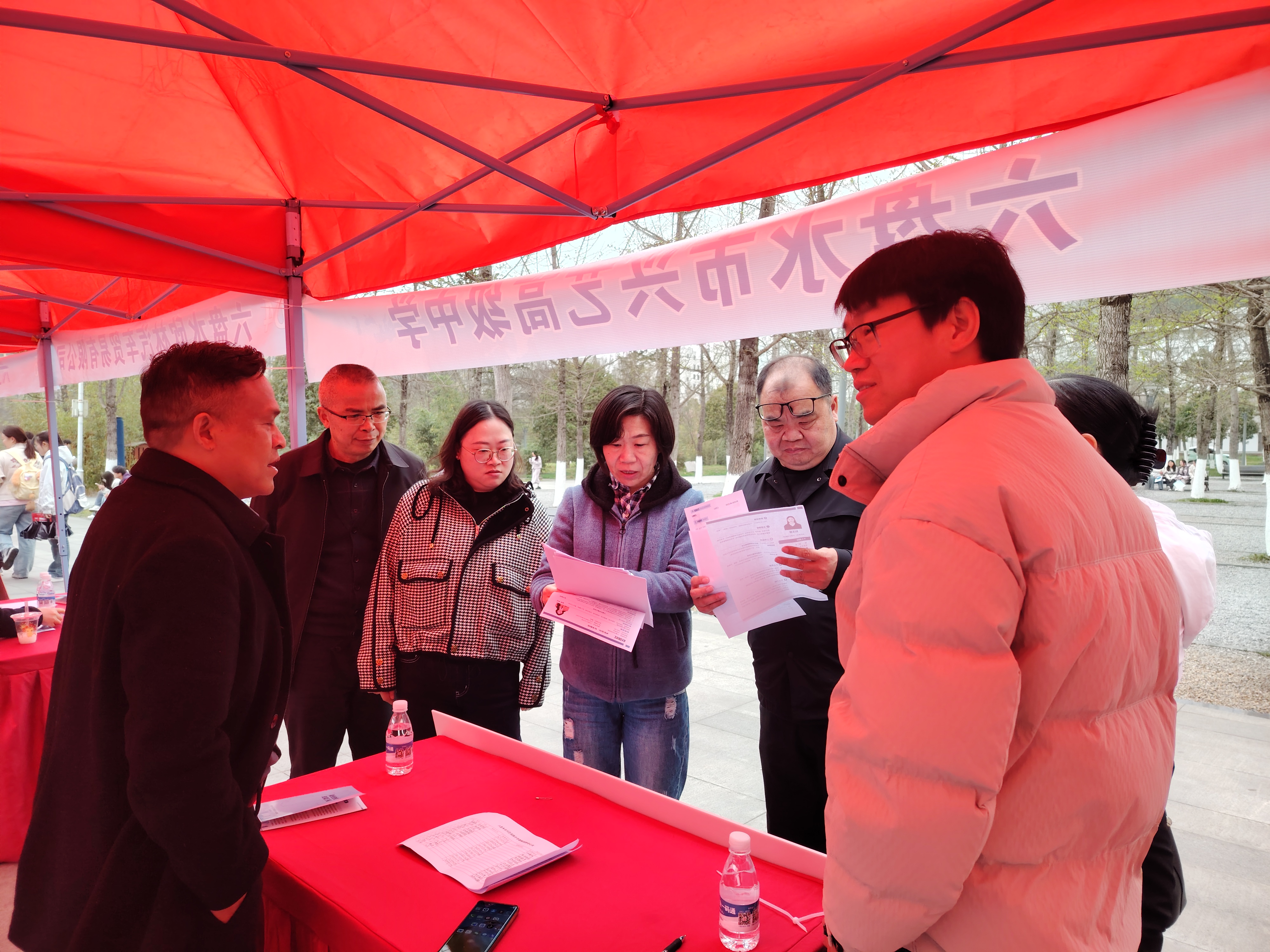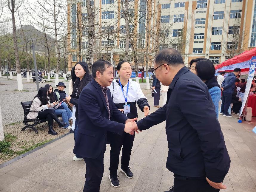 马克思主义学院党委书记杨永贵、院长王世平、副书记蔡娟、副院长周才金深入现场招聘一线,通过实地走访、查看招聘信息、访谈等形式深入开展“访企拓岗”促就业专项工作。走访过程中,班子成员精准对接了兴艺高级中学、仁荣中学、玉宇高级中学、众泰教育集团、明智高级中学、盘州市盘州书院、六盘水市兴华中学、华图教育科技有限公司、航宇高级中学、六盘水九思树人高级中学、贵州锦山书砚发展有限公司等10余家用人单位需求,向其重点推介思想政治教育、历史学专业毕业生,成功促成1名思想政治教育应届毕业生现场签约广东省汕尾市一高级中学思政课教师岗位。
