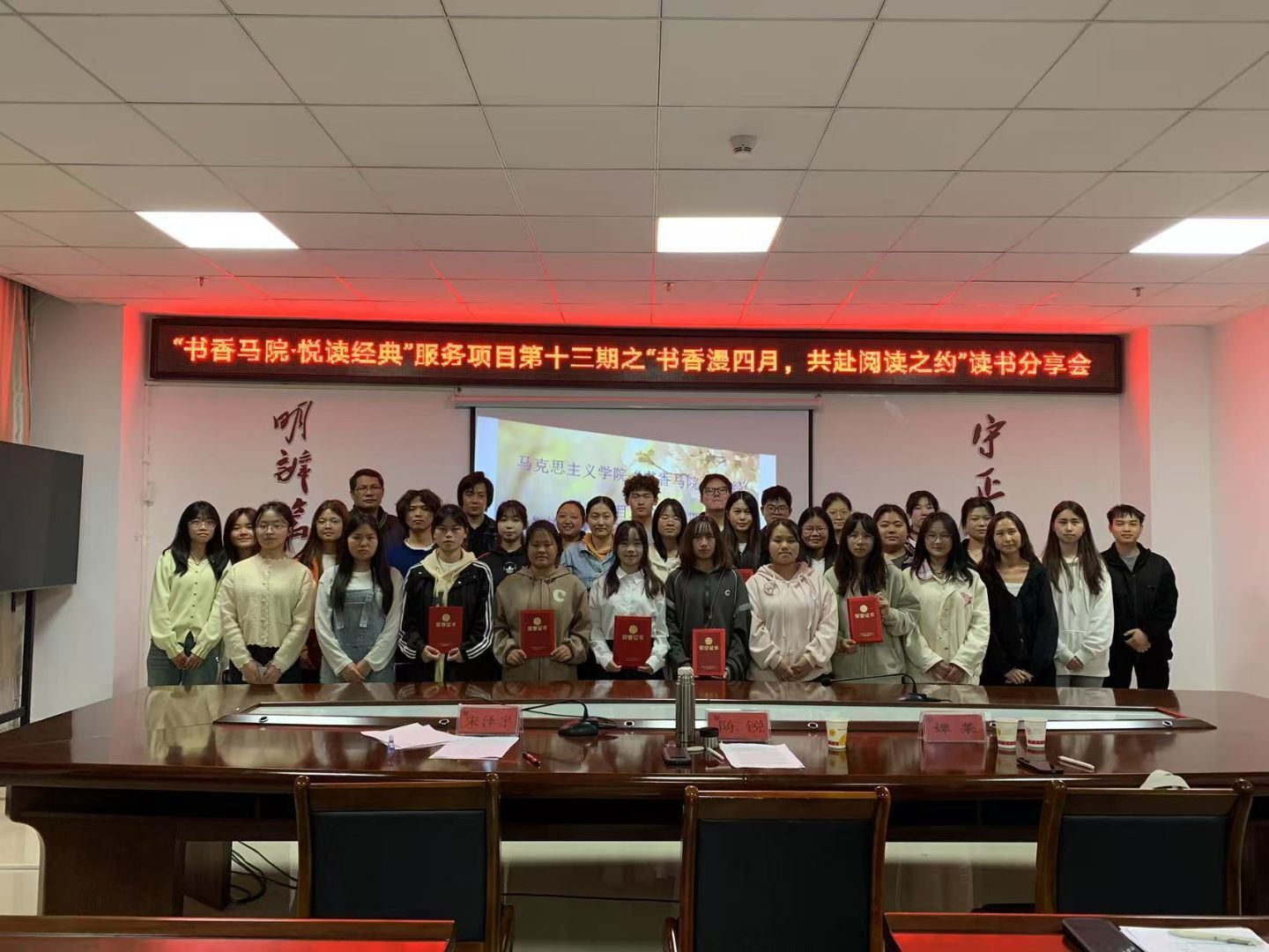 为激发同学们对经典作品的阅读兴趣,在世界读书日到来之际,4月23日,马克思主义学院学生会在奥学楼A1008会议室成功举办了一场主题为“书香漫四月,共赴阅读之约”精彩纷呈的阅读经典分享会,众多阅读爱好者齐聚一堂,共同开启了一段充满智慧与感悟的文学之旅。
