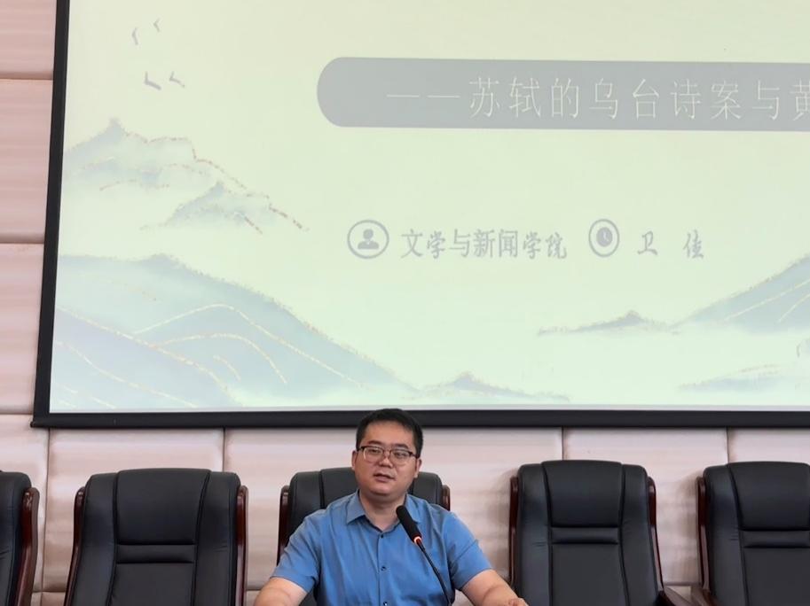 6月12日下午,为繁荣校园学术活动,进一步探索“马院+书院”协同育人模式,马克思主义学院在博学楼117室举办“明湖乐道讲坛”系列讲座第十期。本次讲座由马克思主义学院杨晋副教授担任主持,特邀文学与新闻学院卫佳副教授担任主讲。卫教授以“贬谪中的涅槃:苏轼的乌台诗案与黄州岁月”为主题,为在场师生带来了一场精彩纷呈的文化盛宴。