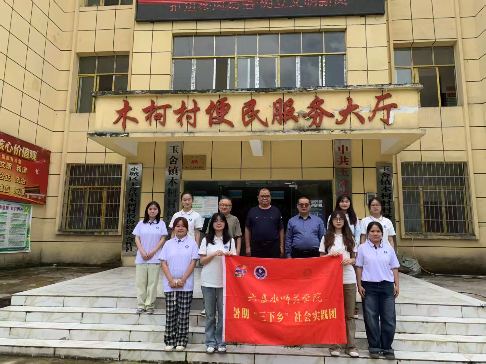 7月25日下午,bat365在线中国登录入口马克思主义学院党委书记杨永贵、杨晋副教授一行前往六盘水市玉舍镇木柯村看望三下乡学生。