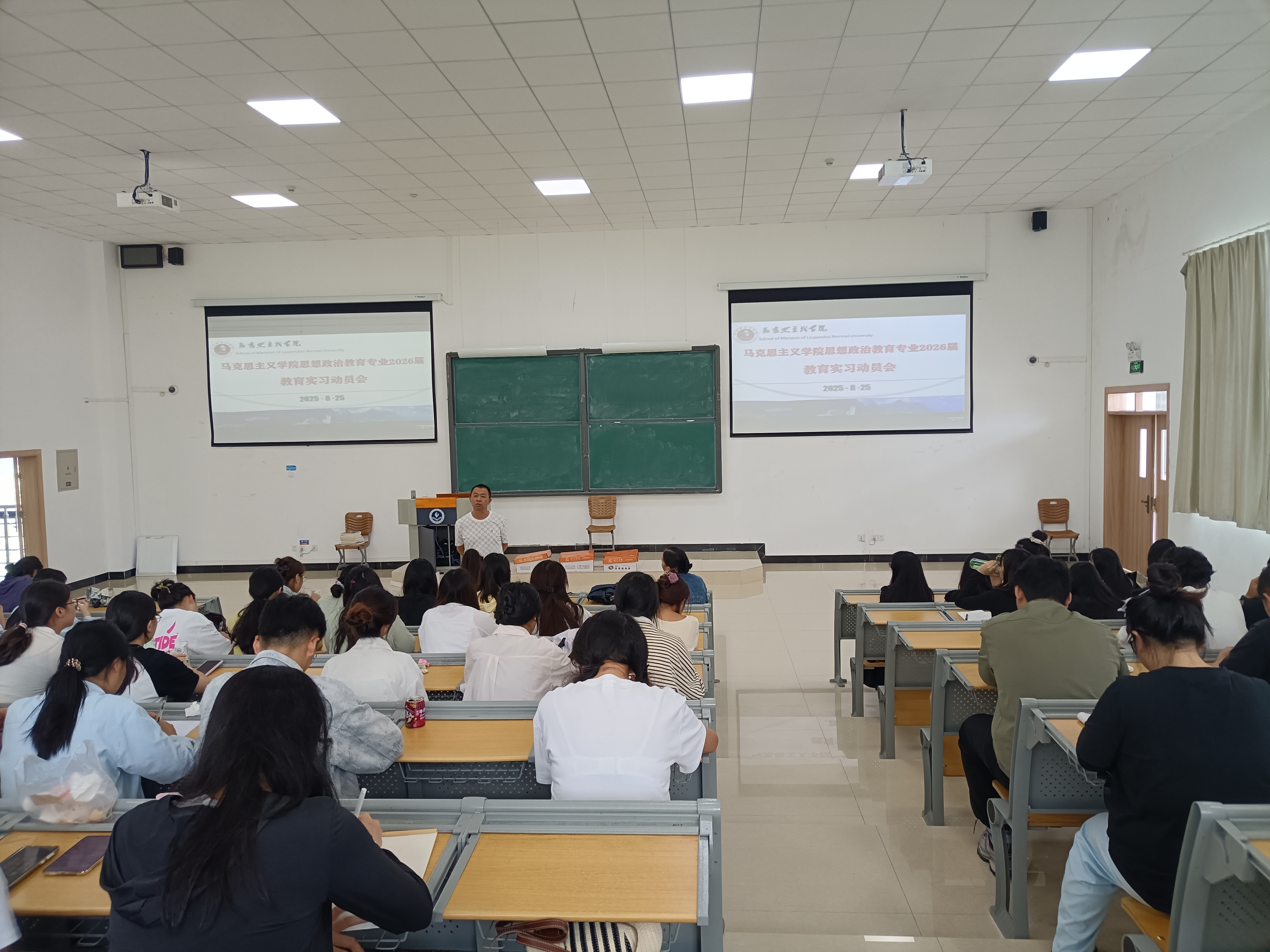 8月25日,马克思主义学院在勤学楼201教室召开2026届教育实习动员大会。学院教师代表及2026届思想政治教育专业全体学生参加。