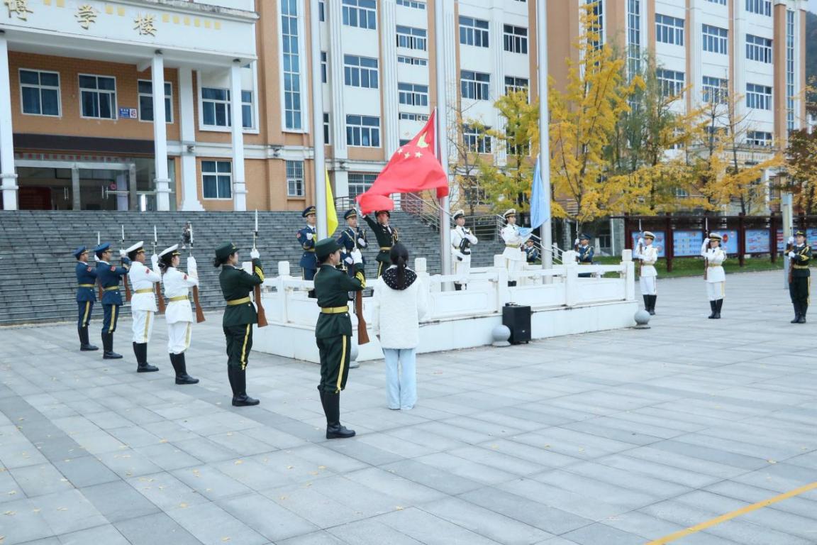 11月17日,马克思主义学院于知行广场举行爱国主义教育升旗仪式。学院党委书记杨永贵、党委副书记蔡娟、学生科科长韩玄哲,及全体学生参加了升旗仪式。仪式由思想政治教育专业2024级学生龙丹丹主持。
