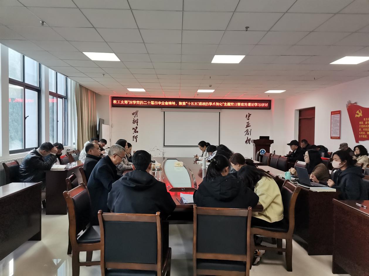 11月24日下午,教工党支部在奥学楼A1008会议室组织开展了“深学党的二十届四中全会精神,聚焦‘十五五’规划建议的学术转化”主题党日暨政治理论学习研讨活动,活动由教工党支部书记张伟军主持,支部全体党员和入党积极分子参加。