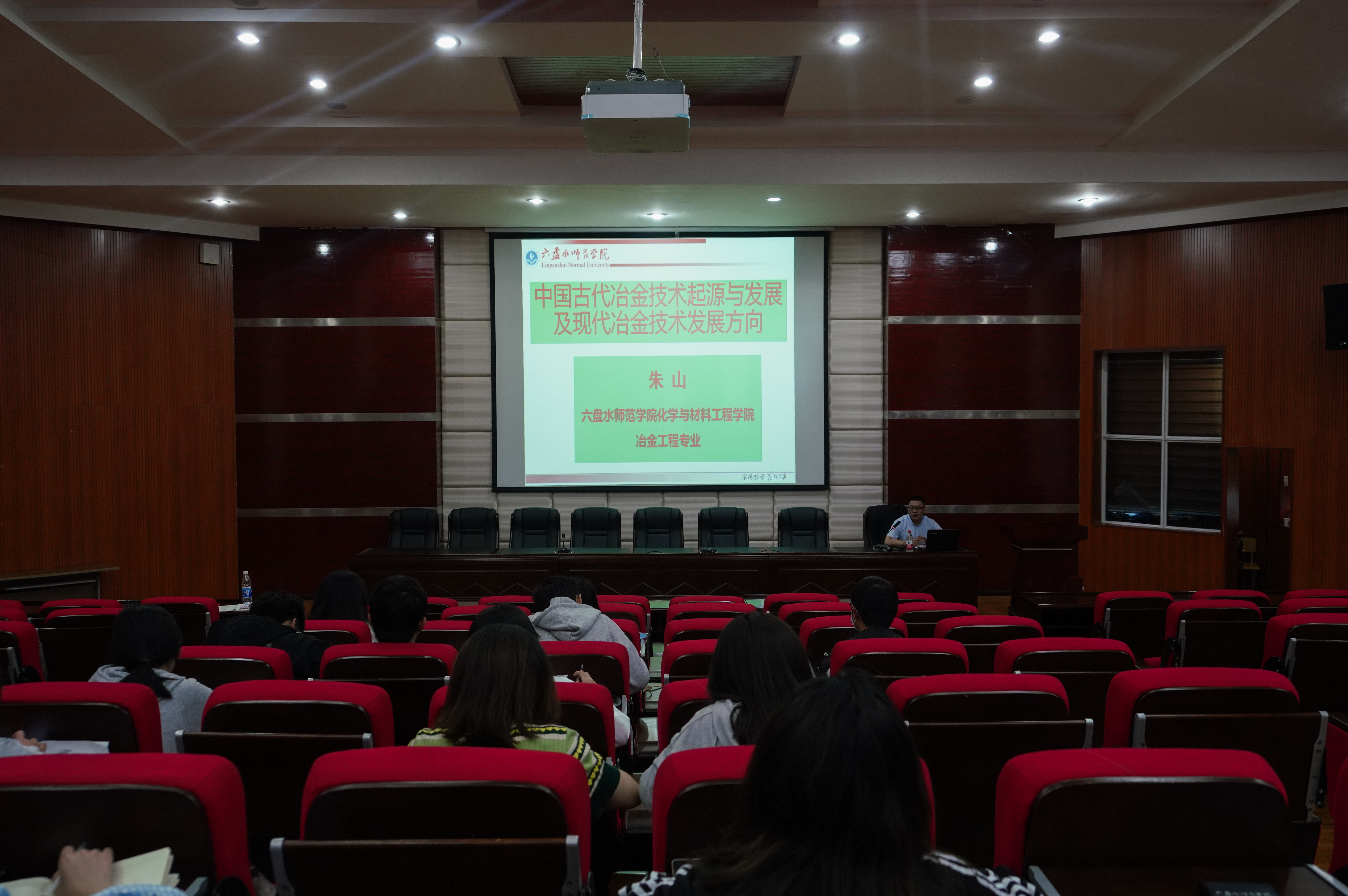 5月25日晚,由六盘水市第四届市管专家、bat365化学与材料工程学院副教授朱山主讲的科技讲坛之“冶金发展历程及其在国民经济中的应用”在博学楼知行讲堂(117室)开讲。