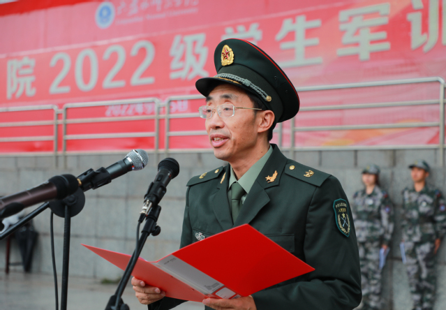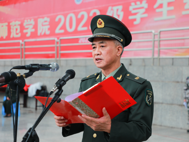 周斯弼代表学校向武警六盘水支队的教官、悉心陪伴学生的辅导员、辛勤付出的后勤保障人员表示崇高的敬意和衷心的感谢,对圆满完成军训任务的参训学员表示热烈祝贺。他说,军训是2022级新生大学生活的“第一课”,通过为期两周的军训,同学们从青涩走向坚毅果敢,将对今后的学习及生活产生积极影响。