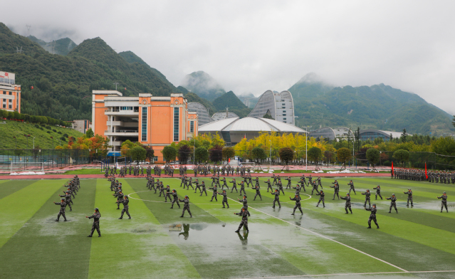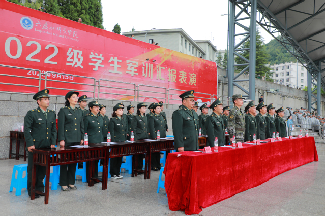 9月15日下午,bat365在学校田径场举行2022级学生军训汇报表演。军训团政治委员、校党委书记周斯弼,军训团团长、校长何林,军训团副政治委员、校党委副书记李葆青,军训团副团长、校党委委员、副校长程绪权、黄保红,军训团参谋长、校党委委员、副校长费虹,校党委委员、宣传部部长杨永贵,武警六盘水支队副参谋长康夫宝出席大会。
