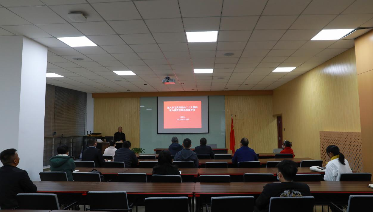 11月24日下午,学校党委委员、副校长黄保红在经纬图书馆二楼学术报告厅宣讲党的二十大精神。学校教务处、艺术学院、体育学院、创新创业学院、继续教育学院部分教职工到场参加学习。(供稿/张云 刘汉林 编辑校对/王良豪 审核/张瑾 陈挺)