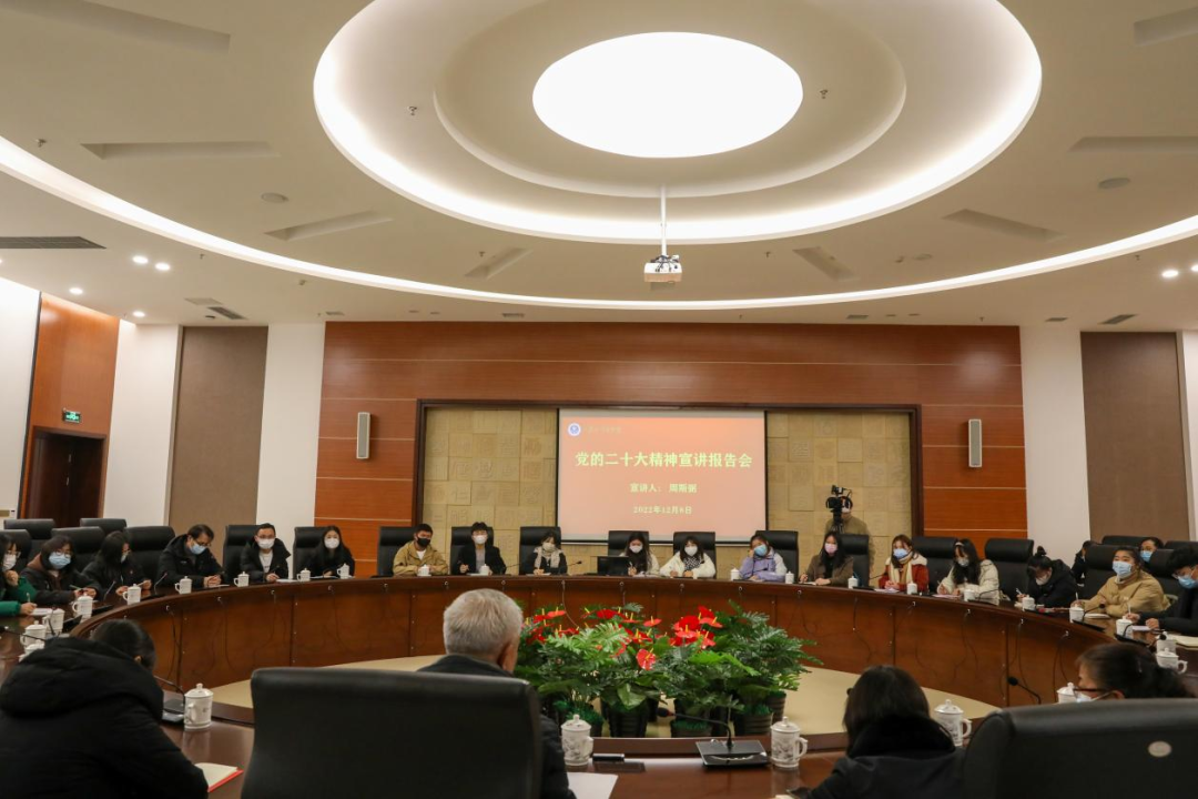 12月8日,学校党委书记周斯弼在学术交流中心圆厅与师生代表座谈宣讲党的二十大精神,并通过问答互动方式,交流学习对党的二十大精神的感悟。