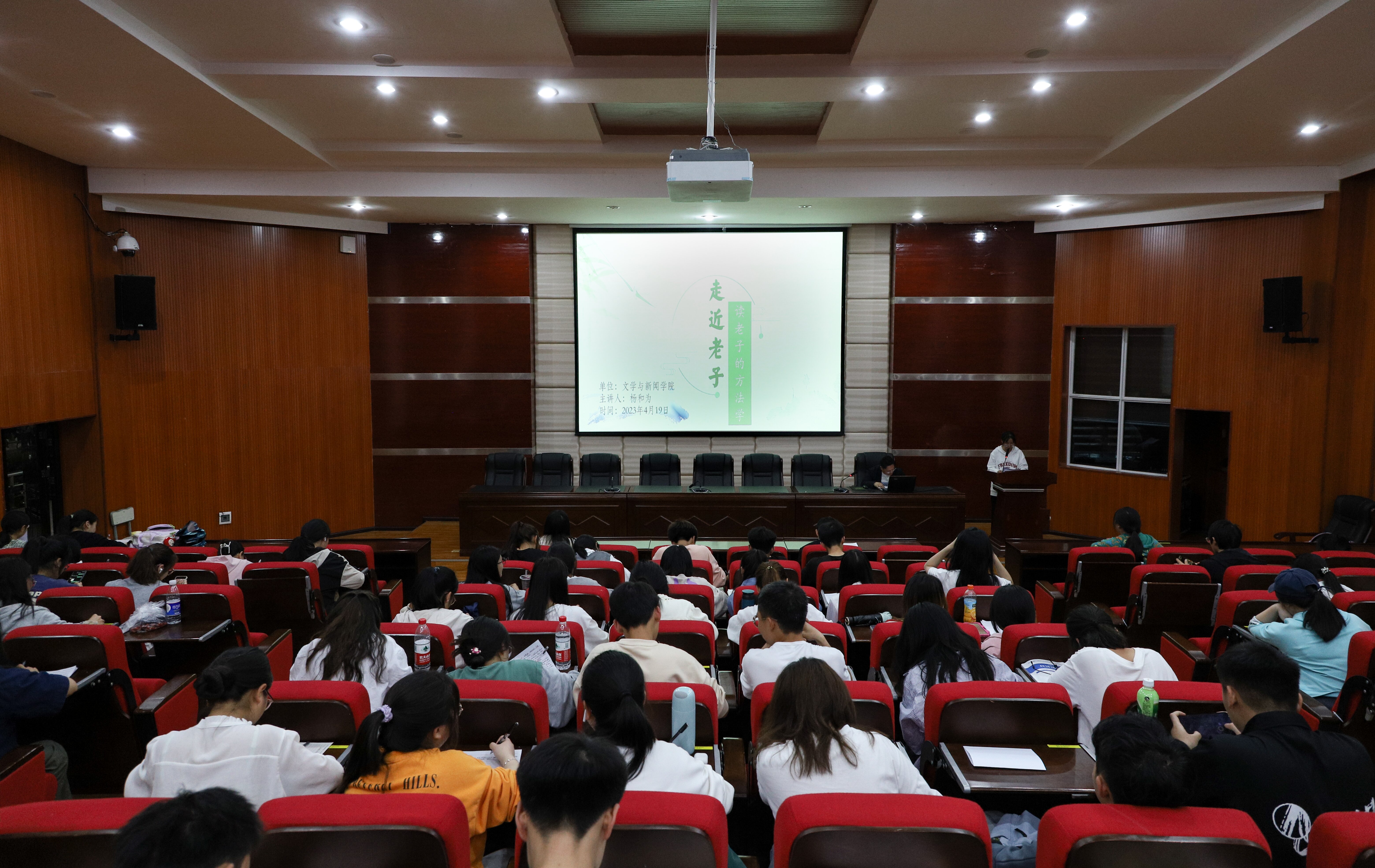 4月19日晚,由bat365文学与新闻学院副教授杨和为主讲的经典精讲之“读老子的方法学——走近老子”主题讲座在博学楼知行讲堂(原117教室)开讲。
