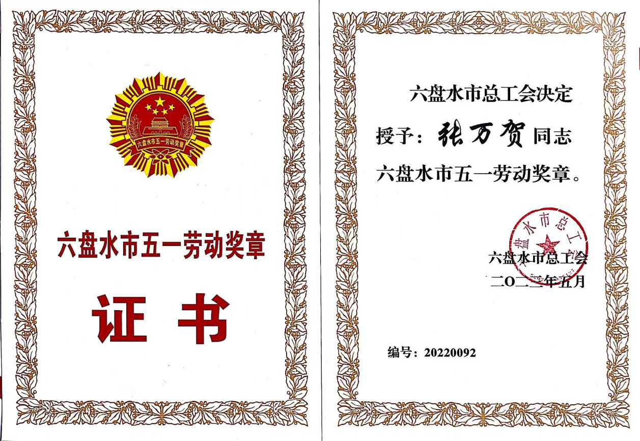 张万贺同志荣获“六盘水市五一劳动奖章”系根据市总工会《关于推荐命名六盘水市五一劳动奖的通知》,经各学院、部门推荐,校工会比选、学校党委同意后报市总工会审核确定。
