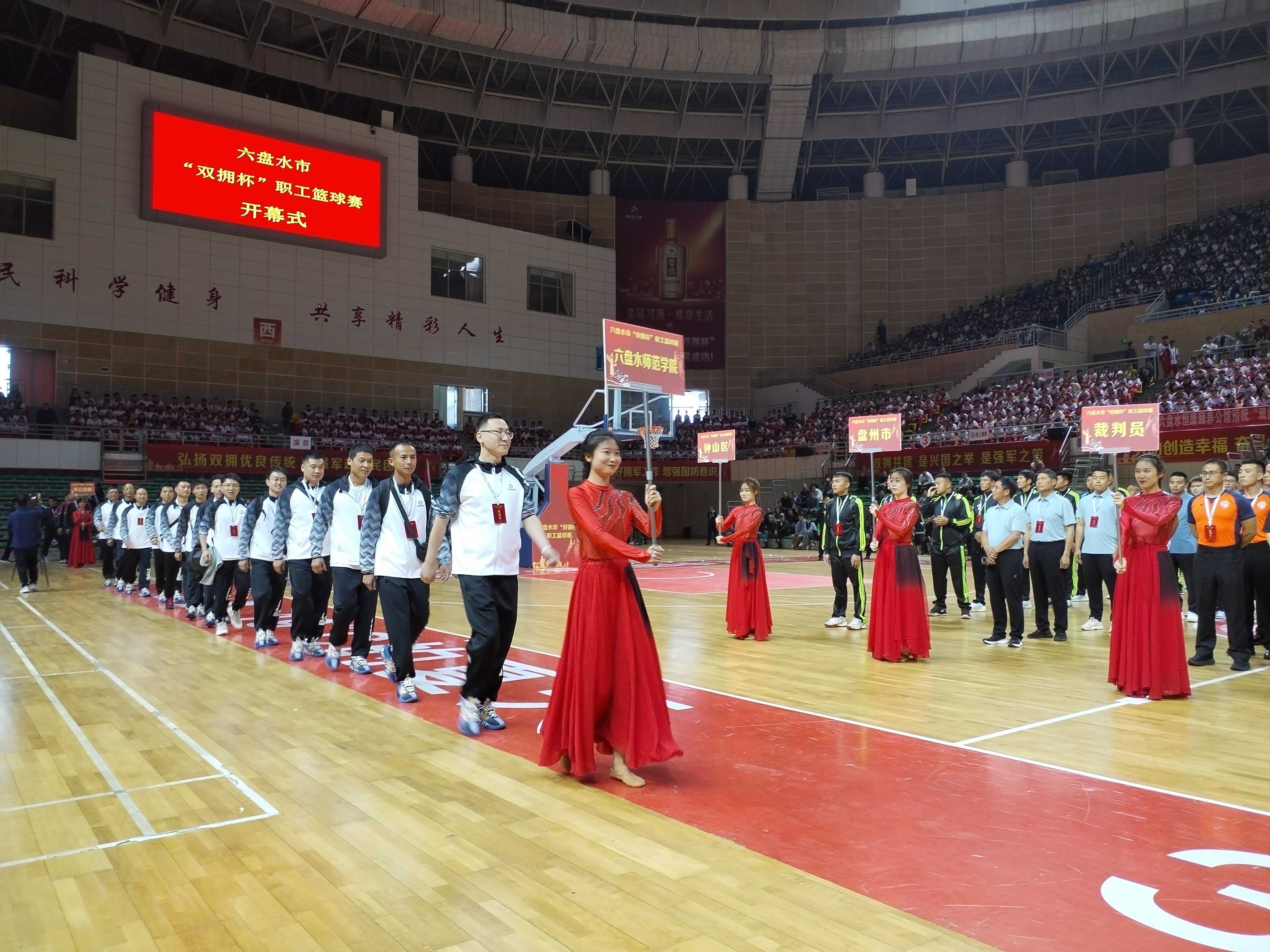 5月14日下午,由市双拥办、市总工会、市体育局、市退役军人局、六盘水军分区政治工作处主办,市篮协承办,市教育局、市工商联、市爱国拥军促进会、贵州文化体育运营管理有限责任公司协办的六盘水市“双拥杯”职工篮球赛在凉都体育中心体育馆举行。bat365教职工代表队、40余名志愿者、200余名师生参加开幕式。(供稿/郭琳 编辑校对/朱恩良 审核/顾典宇)