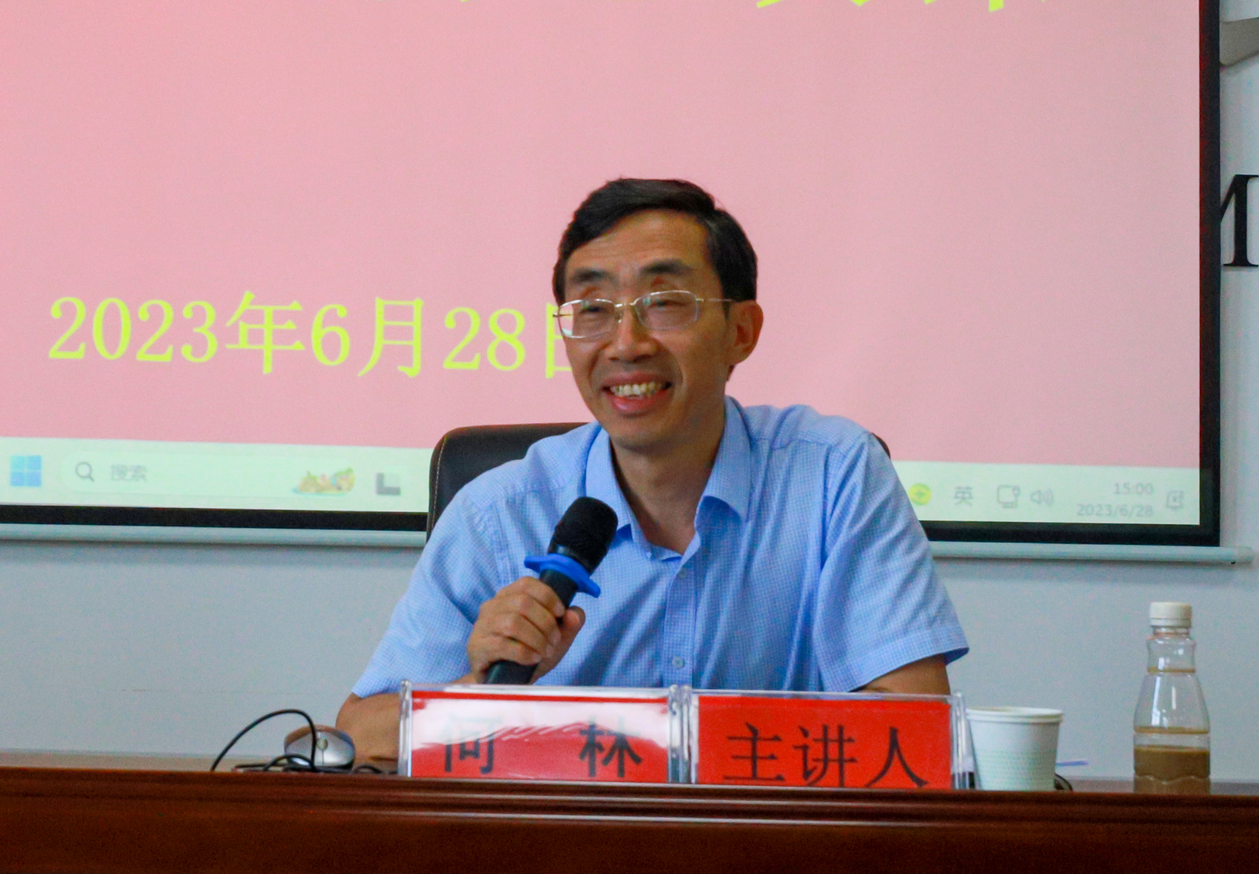 6月28日下午,校长何林到化学与材料工程学院会议室为所联系的化材学院21级冶金工程全体同学、教育科学学院2022级小学教育与学前教育部分学生以及两个学院的教师代表讲授时事政策思政课。