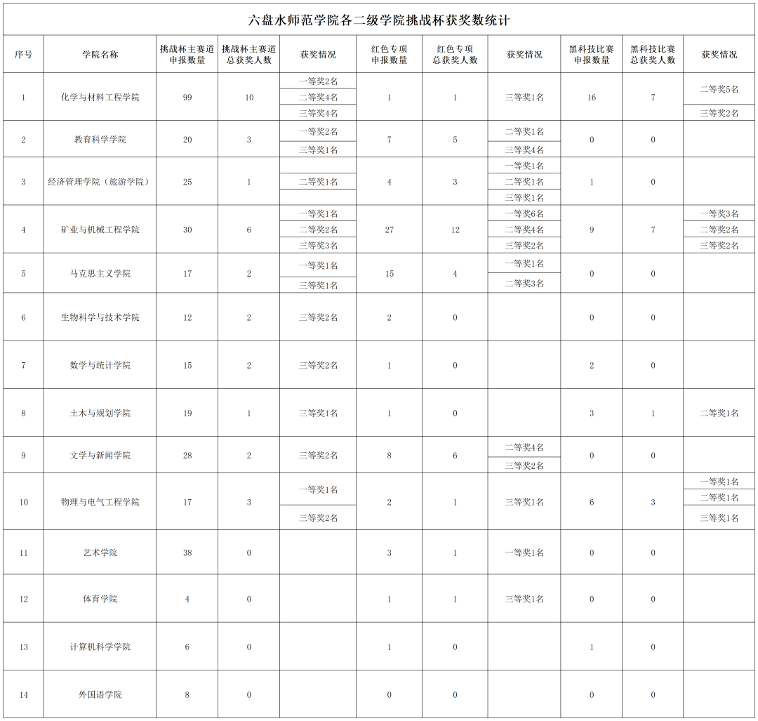 各学院获奖作品统计