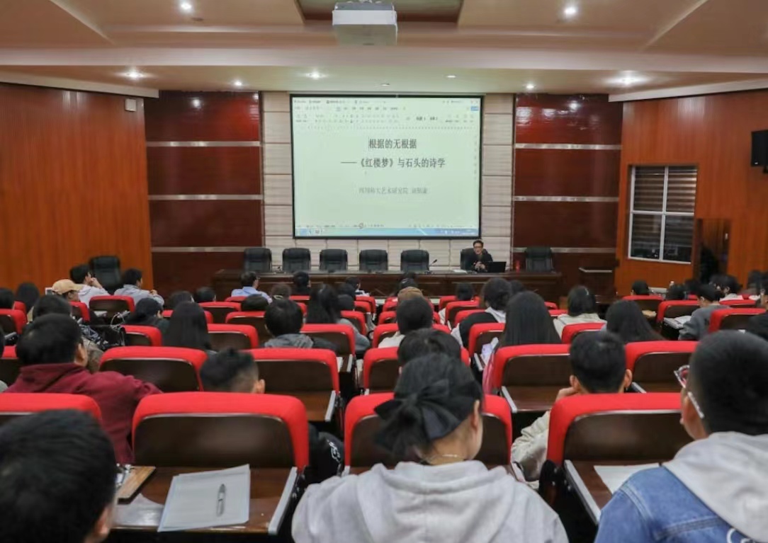 研读名著经典,探寻生命之根。11月1日,经典精讲系列讲座之“根据的无根据——《红楼梦》中的‘石头’存在诗学”在博学楼知行讲堂开讲,bat365特邀四川师范大学艺术研究院二级教授、博士生导师刘朝谦主讲。学校党委委员、副校长费虹,文学与新闻学院党委书记龙尚国、汉语言文学专业系主任卫佳参加讲座。