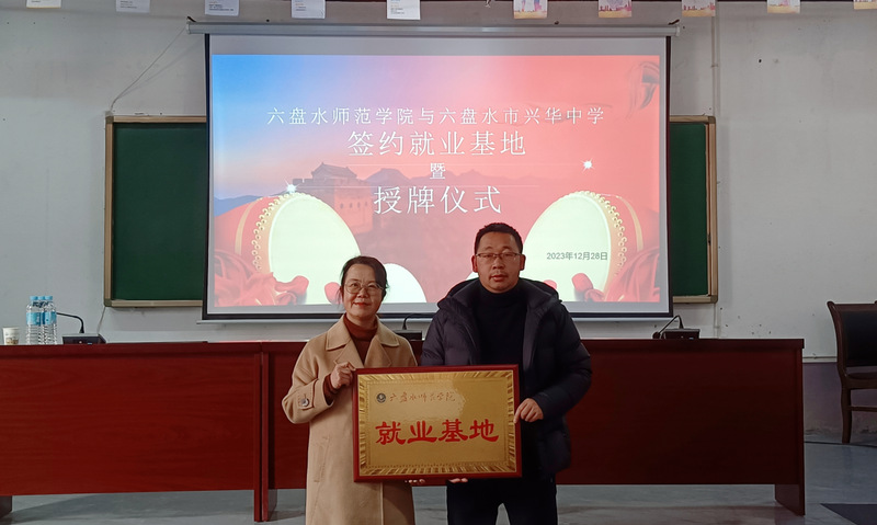 12月28日,费虹副校长带领招生就业处到六盘水市兴华中学开展访企拓岗专项行动,举行就业基地签约仪式并授牌。