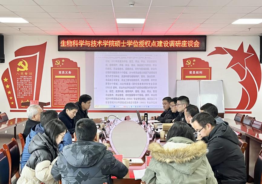 周斯弼强调,生物科学与技术学院要深入调研,全面分析省内高校硕士学位授权点建设情况和国内高校农学专业发展情况,广泛邀请专家“把脉”,在立足地方特色、师资建设、科研成果以及人才培养质量的基础上挖掘自身特色,凝练学科方向,做好顶层设计,实现错位竞争。
