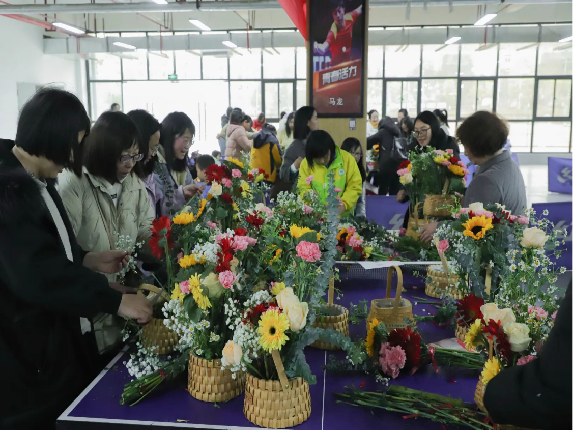 讲座结束后,“女职工插花技艺展演”和“插花比赛”在“教职工之家”有序开展,来自各学院各部门的女教职工350余人参加活动、领取纪念品。现场花香四溢,大家仔细选材、精心设计,沉浸在插花技艺展示的欢乐氛围中,灿烂的笑容与芬芳的鲜花交相辉映,气氛轻松欢乐。经过近一个小时的精心设计,女职工们纷纷捧出一束束色彩缤纷、风格多样的插花、花篮。