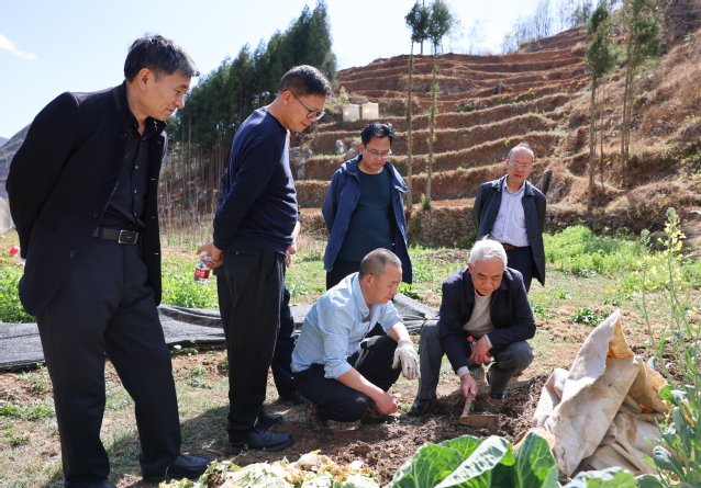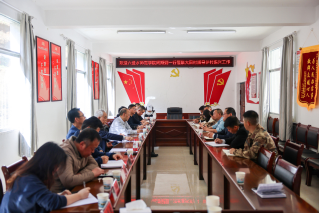 3月24日下午,学校党委书记周斯弼,党委副书记、校长程绪权率队到水城区玉舍镇大田村调研,党委委员、副校长王际明、艾德春,党委委员、组织部部长向虎跃,科研处及生物科学与技术学院相关同志参加调研。玉舍镇人大主席何胤,大田村村支两委成员陪同调研。