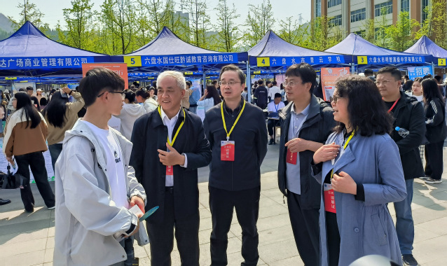 贵阳市总工会领导和学校领导到场巡展。贵阳市人大常委会副主任、市总工会主席田胜松,学校党委书记周斯弼,副校长王际明、艾德春、费虹等领导到招聘会现场走访相关企业,与用人单位和毕业生亲切交谈,积极为毕业生推介就业岗位。