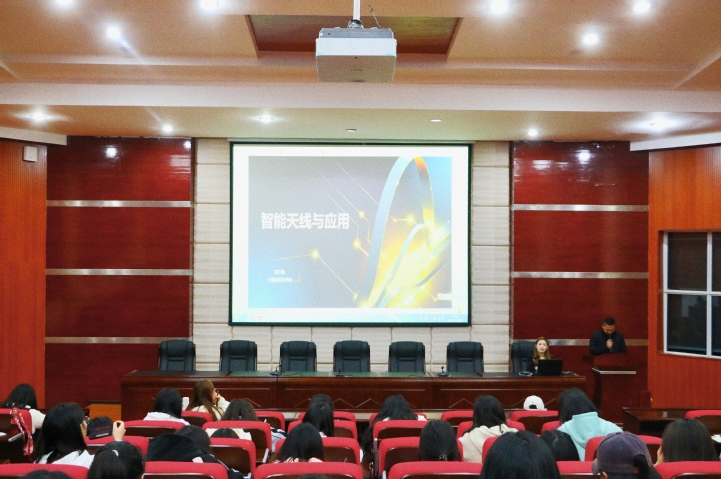 讲座开始,霍兴瀛以在座师生“移动通信用户”的身份为切入点,引出智能天线的概念及定义,并简要讲述了智能天线在通讯过程中的运行方式和原理。同时为加深在场师生对智能天线的理解,霍兴瀛还以手机接收信号的过程解释了智能天线的信号辐射模式。