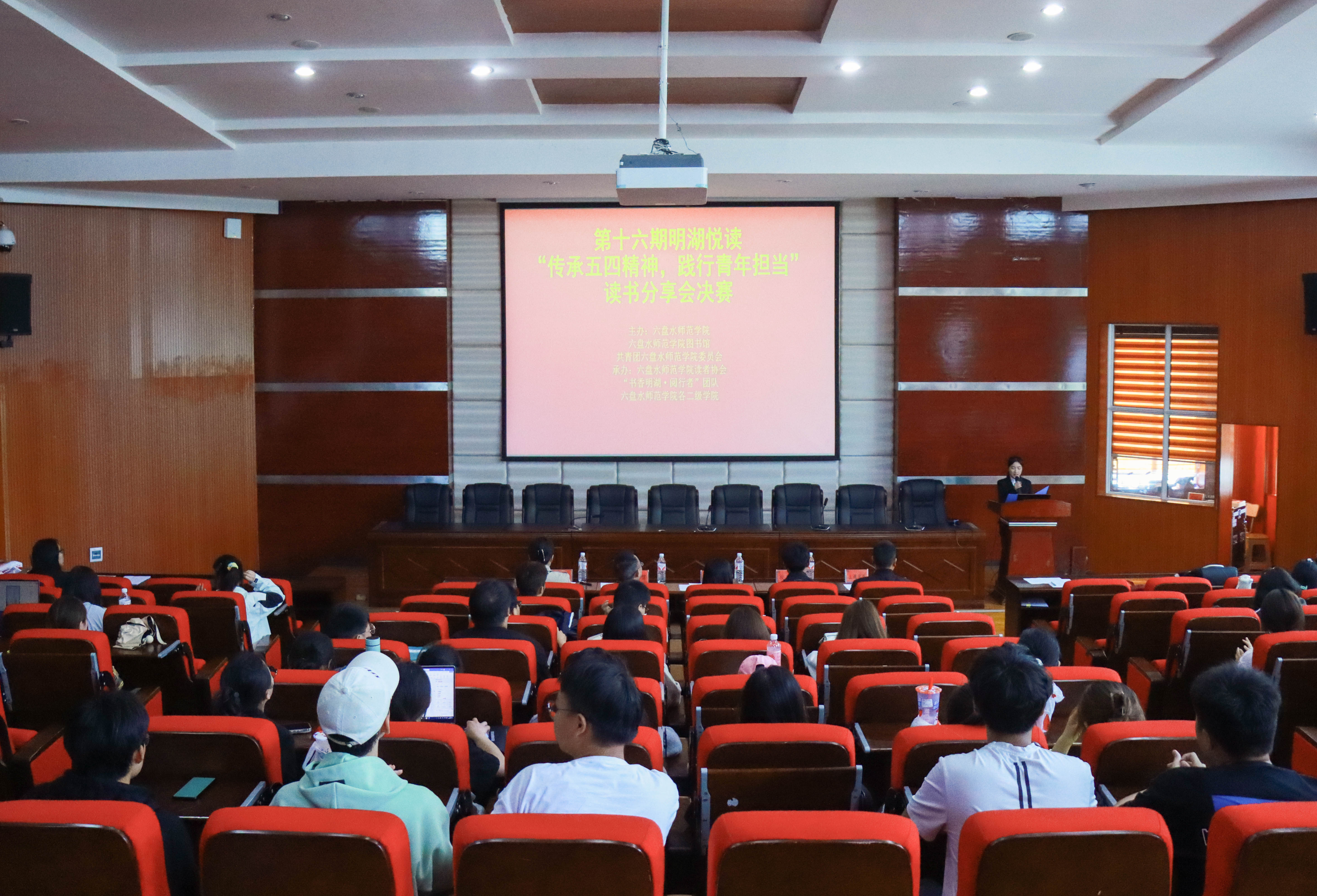 6月6日下午,主题为“传承五四精神,践行青年担当”的第16期“明湖悦读”读书分享会决赛在博学楼知行讲堂举行。学校图书馆副馆长梁斌、党委宣传部文化建设科科长谢春霞、图书馆综合部主任谢文东、党委学生工作部学生资助管理科副科长施毅、团委组织宣传部副部长邓永威担任比赛评委。