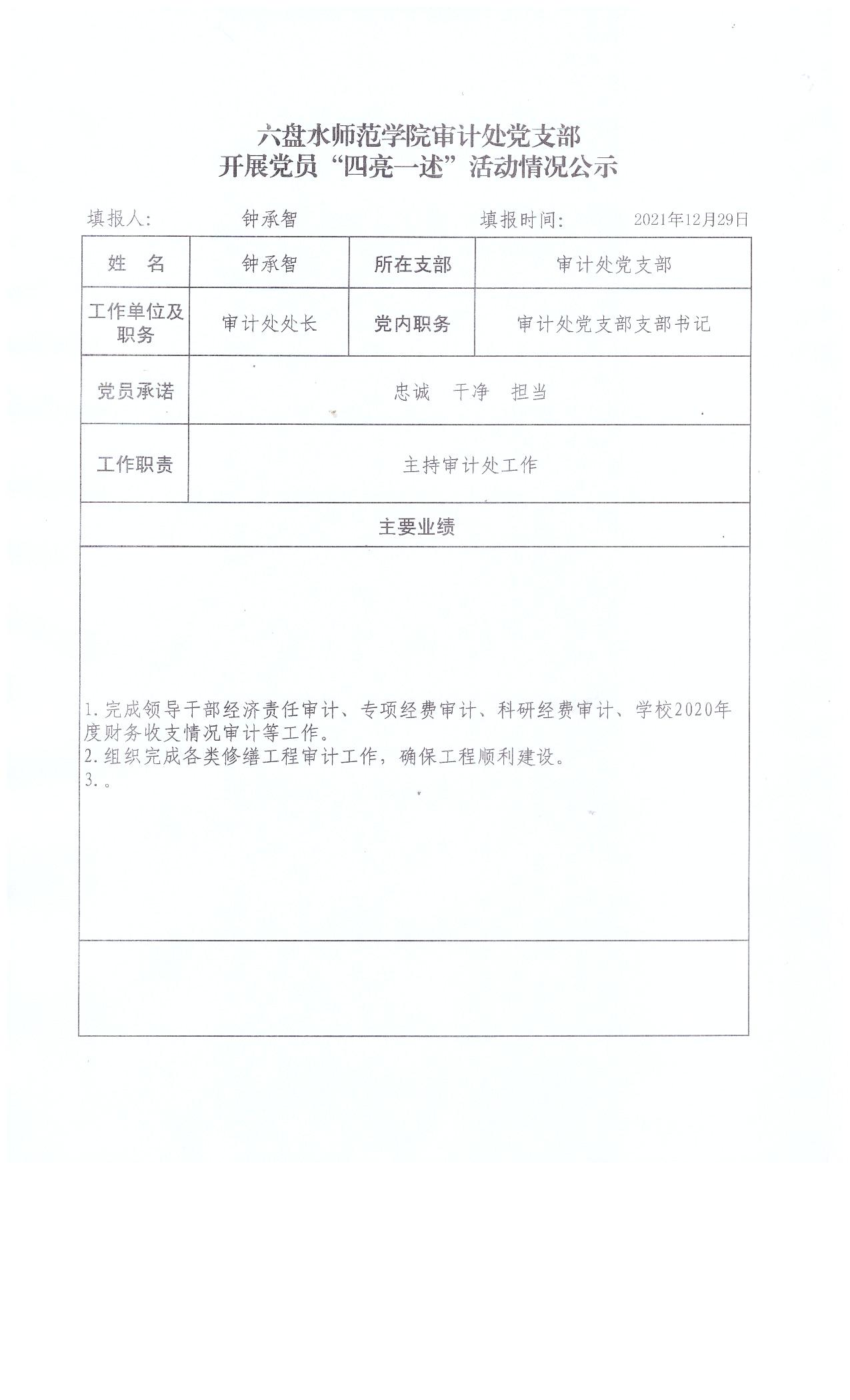 审计处党支部党员2021年下半年“四亮一述”活动公示情况