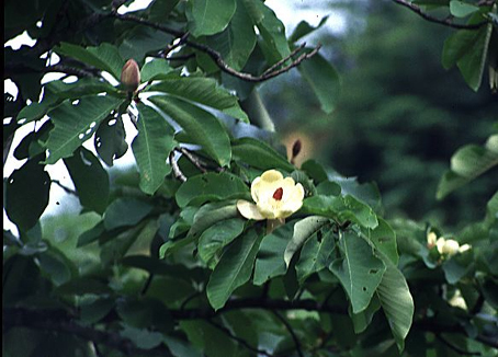 叶:叶大,近革质,7-9片聚生于枝端,长圆状倒卵形,长22-45厘米,宽10-24厘米,先端具短急尖或圆钝,