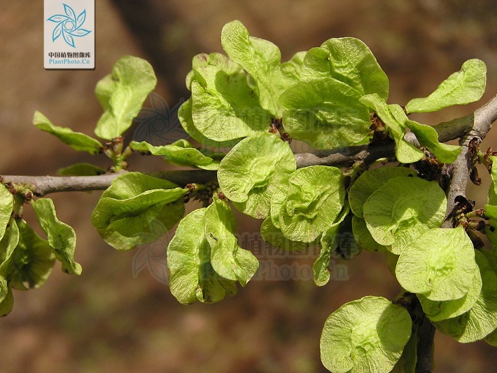果实:翅果近圆形,稀倒卵状圆形,成熟前后其色与果翅相同,初淡绿色,后白黄色,果梗较花被为短,花果期3-6月。