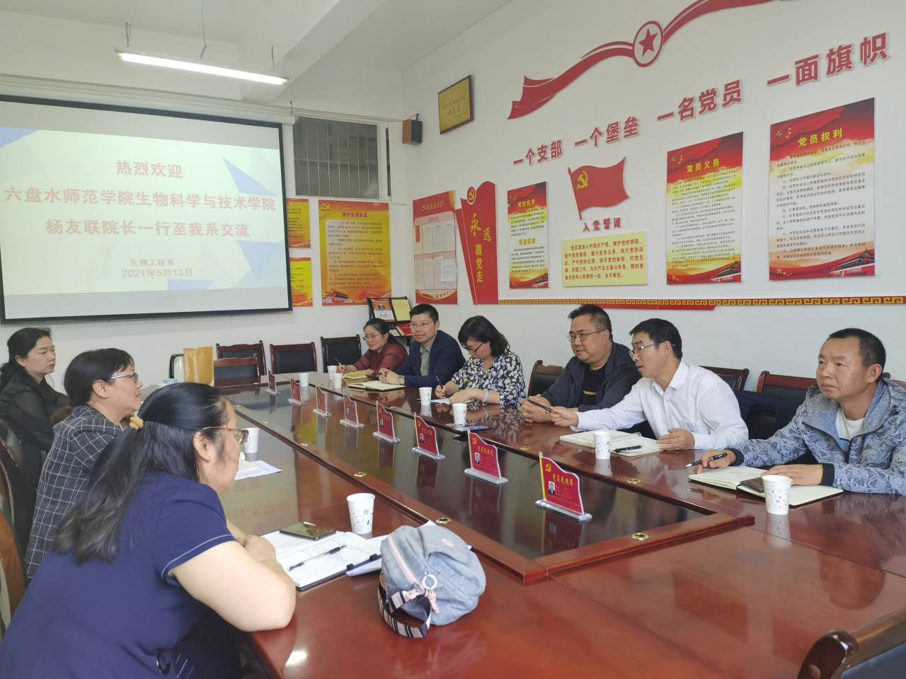 5月14日下午,生物科学与技术学院院长杨友联、学校教务处副处长熊荣川到六盘水职业技术学院生物工程系考察交流。学院动物科学系主任赵新霞、党政办公室主任徐龙飞、实验中心主任翁贵英及教师王应权陪同。