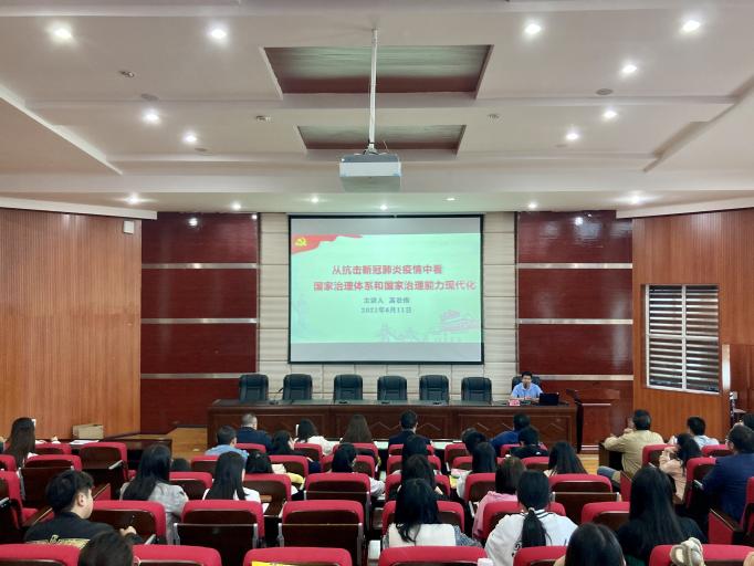 6月11日,生物科学与技术学院党委在博学楼117教室召开党史学习教育集中宣讲会。bat365在线中国登录入口“百年风云映初心”党史宣讲服务团成员、马克思主义学院思政系主任、副教授高壮伟以《从抗击新冠肺炎疫情中看国家治理体系和治理能力现代化》为题到会宣讲。学院教工党支部、学生党支部全体党员、发展对象、入党积极分子和师生代表共130余人参会学习。