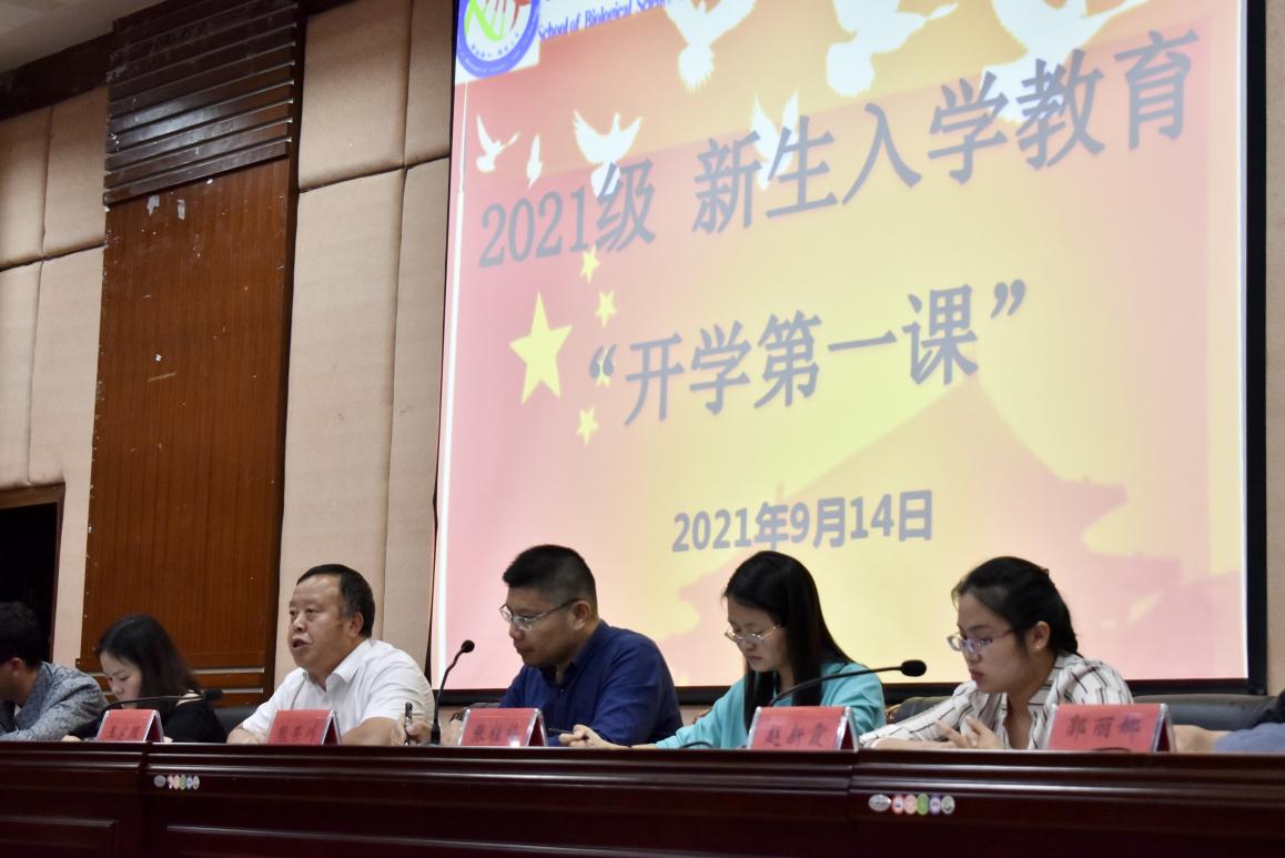 为进一步让新生了解学院,更好地融入大学,9月14日晚上,生物科学与技术学院在智学楼3楼朝阳讲堂开展2021级新生入学教育“开学第一课”。学院党委书记王家理、院长熊荣川、副院长方玉梅出席。各教学系主任、新生班主任及2021级全体新生参加。