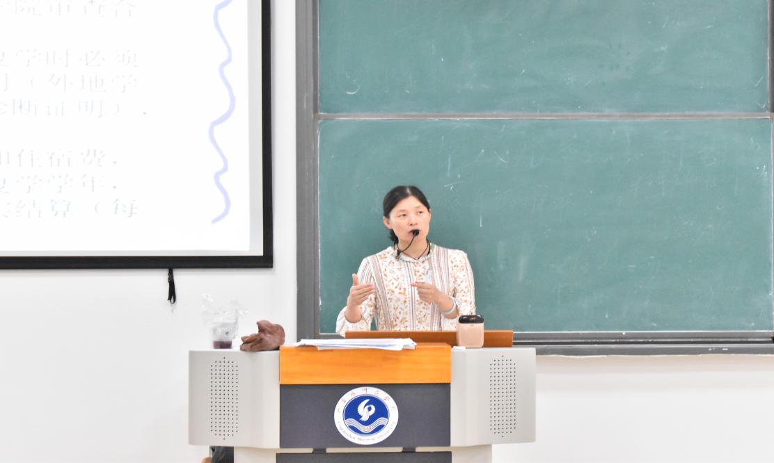 9月23日晚上,生物科学与技术学院在勤学楼208教室,开展以学籍管理细则、学士学位授予办法为核心的教学管理规定培训。学院教学科研科科长陈志霞主讲,2021级全体新生参加培训。