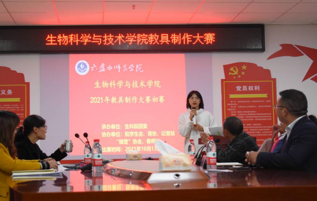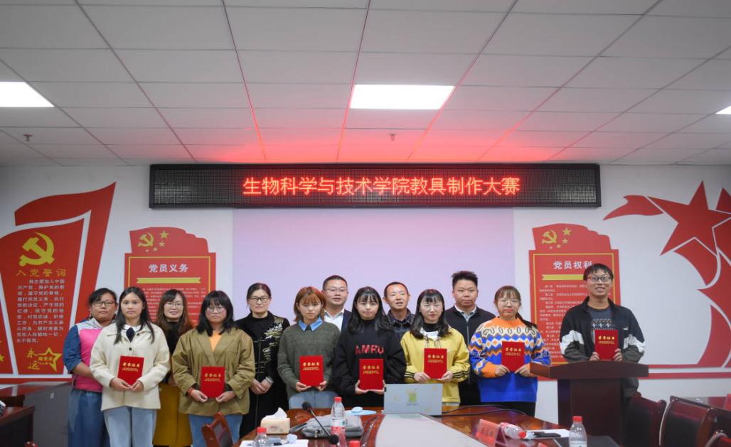 为培养学生创新意识,锻炼动手能力,促进学科知识应用,10月13日晚上,生物科学与技术学院在奥学楼A623活动室举办教具制作大赛。学院党委副书记匡其羽出席,担任比赛评委的有学院教师王应权、黄倩、陈志霞、郭丽娜和黄贵强,学院各专业学生共组成24支队伍参加比赛。