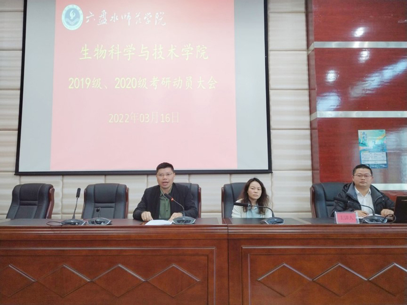 为进一步加强学风建设,调动2019级、2020级学生考研积极性,鼓励学生树立考研目标,科学规划学习进度。3月16日下午,生物科学与技术学院在博学楼117知行讲堂召开考研动员大会。学院院长熊荣川、副院长方玉梅出席,党委副书记匡其羽主持,2019级、2020级全体学生参加了动员会。