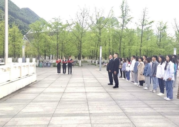 4月25日清晨,迎着初升的太阳,鲜艳的五星红旗在知行广场上冉冉升起。生物科学与技术学院的全体师生佩戴校徽,向国旗行注目礼。